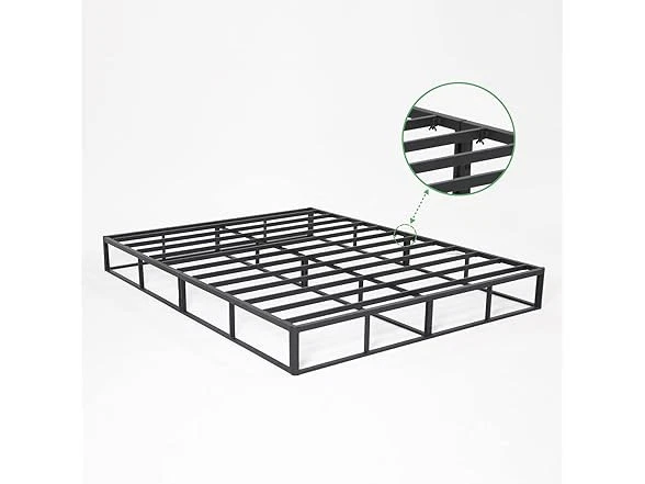 Novilla Box Spring for Queen Bed, 4-Inch Metal Queen Box Spring Supports for All Types of Mattress/Extra-Strong Support & Non-Slip, No Noise, Easy Assembly Condition: New Features [PRODUCT DIMENSION]: 79"L x 59.5"W x 4"H [BOX SPRING COVER INCLUDED]: Novilla designed this foundation with a premium removable box spring cover. This cover is made of 100% Polyester, which is skin-friendly and comfortable [LOW PROFILE DESIGH]:The 4-inch height is perfect for higher height mattresses or for those who prefer to keep their bed closer to the floor. Both enhance the overall aesthetics and provide adequate support for all types of mattresses [STABILITY SYSTYM]: Novilla Box spring is made of strong and durable steel, each pole and support frame is seamlessly welded at both ends, making the whole structure safer and stronger, preventing structural distortion, and providing noise-free and excellent support for your mattress Specs In the Box: (1) Novilla Box Spring for Queen Bed, 4-Inch Metal Queen Box Spring Supports for All Types of Mattress/Extra-Strong Support & Non-Slip, No Noise, Easy Assembly