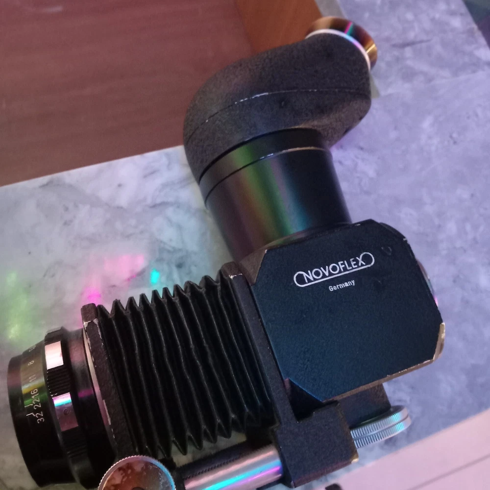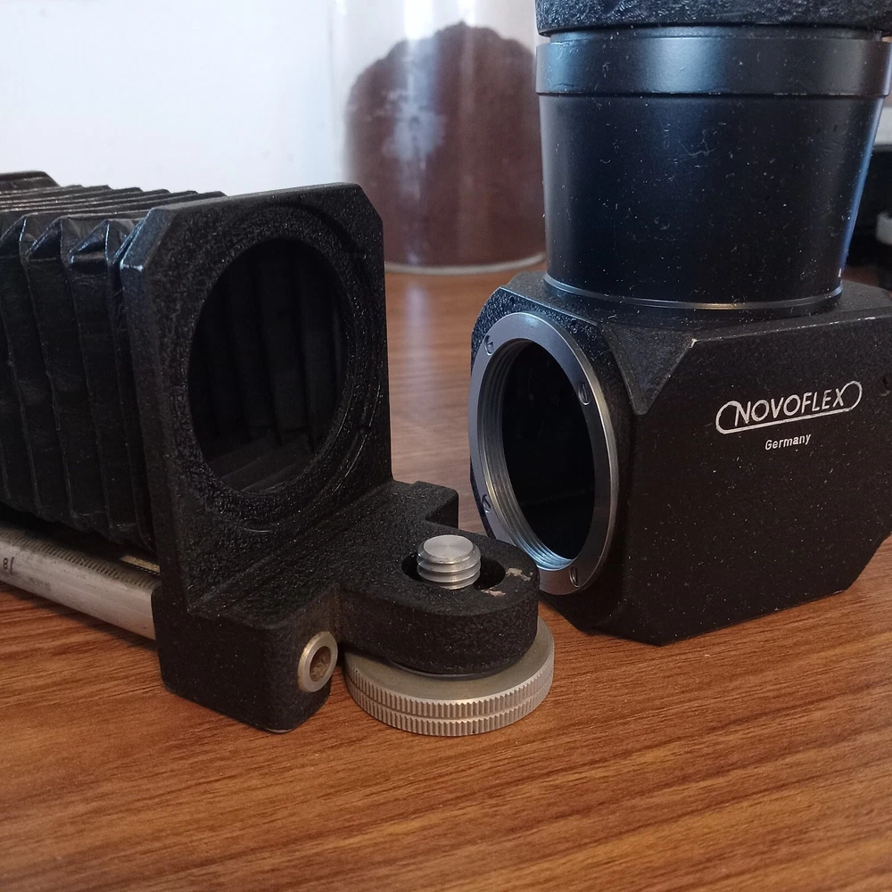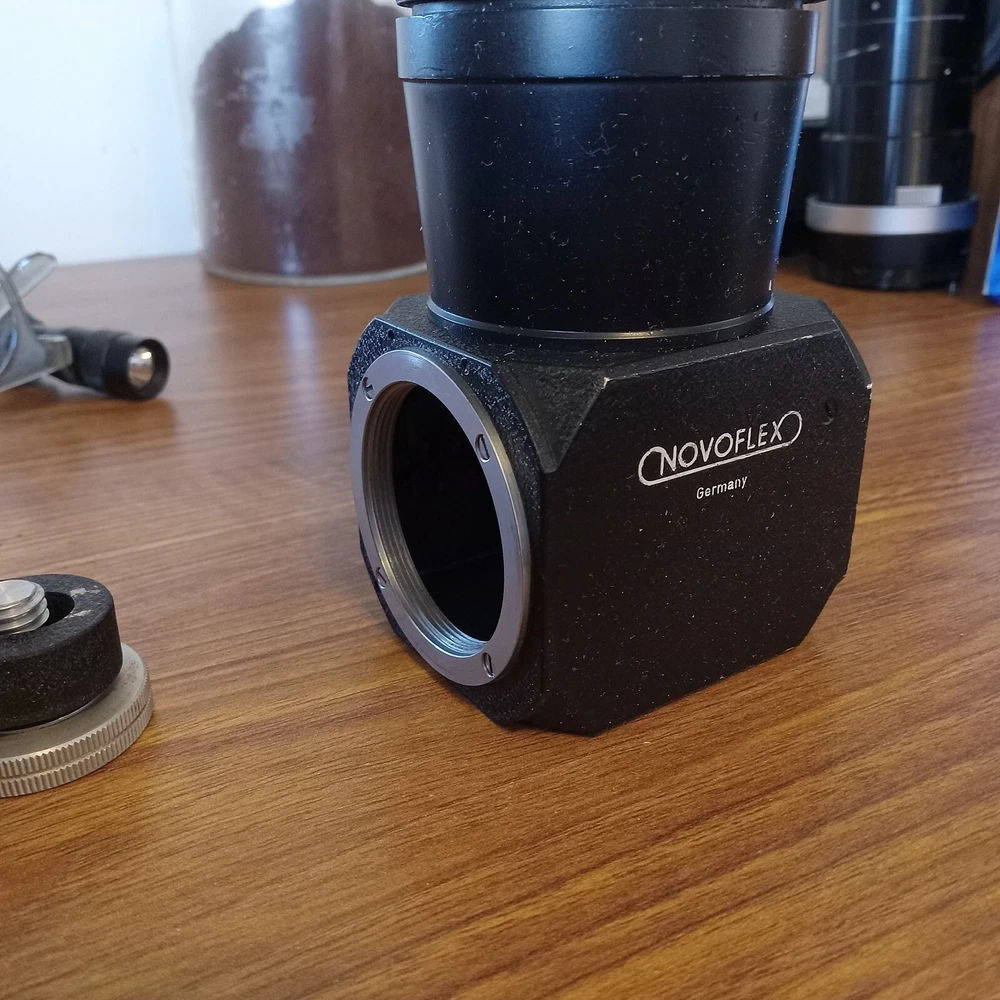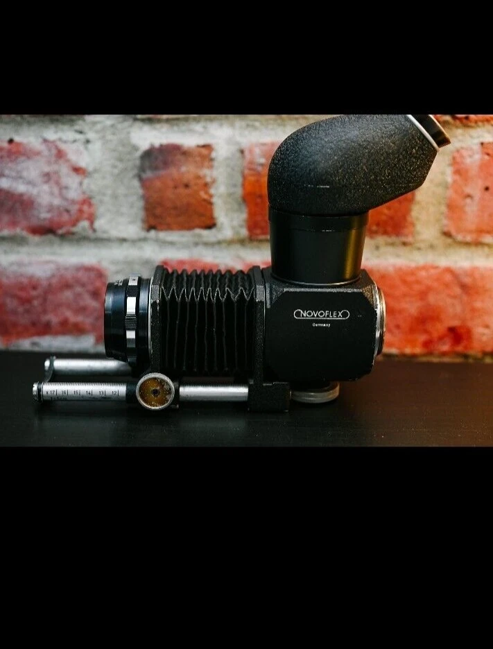 -Novoflex set includes 135mm 1:4.5 Novoflex lens, SLR Scope and Novoflex bellows. -Bellows show signs of wear, lens is in excellent condition. -Perfect for macro will focus from extreme close up to infinty. -Shipping from Edomton Canada any questions please ask Martin