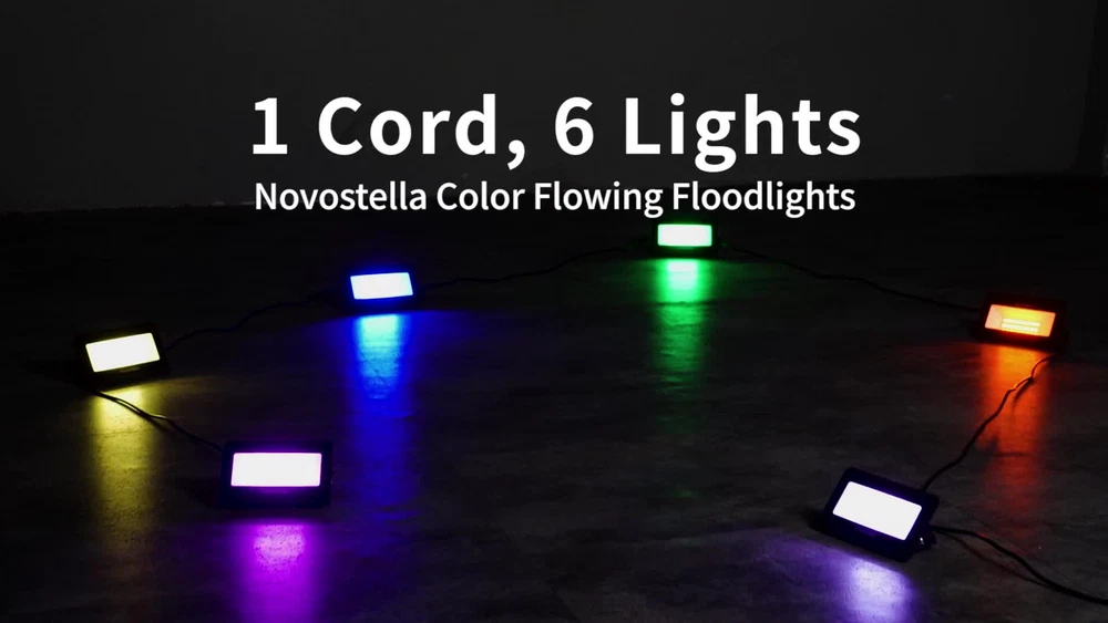 Novostella RGB LED Flood Light Dimmable Landscape Lighting IP66 60W RGBW 6 Packs