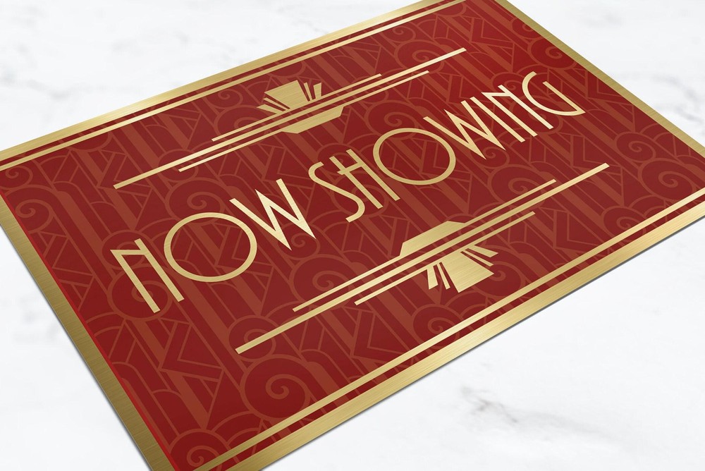 Now Showing Home Movie Theater Sign Custom made home theater signs. Perfect for your home theater/ man-cave setup Our signs are made out of brushed gold aluminum We include double-sided 3M tape for easy hanging just about anywhere Size - 12inch x 8inch other sizes available upon request our signs are custom made in the USA We have very fast shipping and offer money back guarantee Do not see a sign you need, let us know and we can custom make it for you