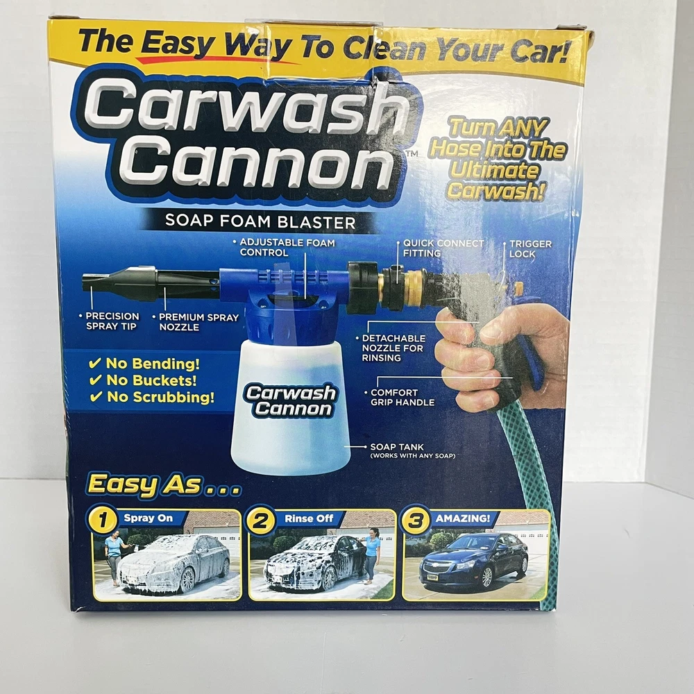 Experience the ease of car washing with the Cannon Soap Foam Dirt Dust Blaster Hose. This lightweight and efficient tool is designed to make your cleaning routine a breeze. Equipped with a quick connect feature, it effortlessly attaches to your hose, and the integrated soap tank ensures you can tackle grime effectively with just the right amount of foam. Crafted for convenience, the Nozzle Spray Car Wash Gun is an essential accessory for any car enthusiast or busy individual looking to maintain their vehicle's appearance. The durable plastic construction guarantees long-lasting use, while the compact design allows for easy storage in your garage or at home. With the product dimensions of 4.21 x 16.02 x 8.44 inches and a weight of 1lb 3oz, you can manage and enjoy this high-quality cleaning solution with minimal effort.
