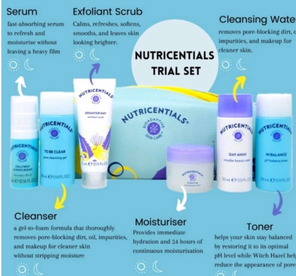 The NuSkin nutricentials Travel Kit Set is a limited-time offer that includes Celltrex In Balance products sealed for daily use. With moisturizing ingredients such as Shea Butter and Aloe Vera, this set is perfect for all skin types and includes products for the face, full body, and hands. The set also features SPF 15 for added sun protection, making it a convenient and hydrating option for travel.