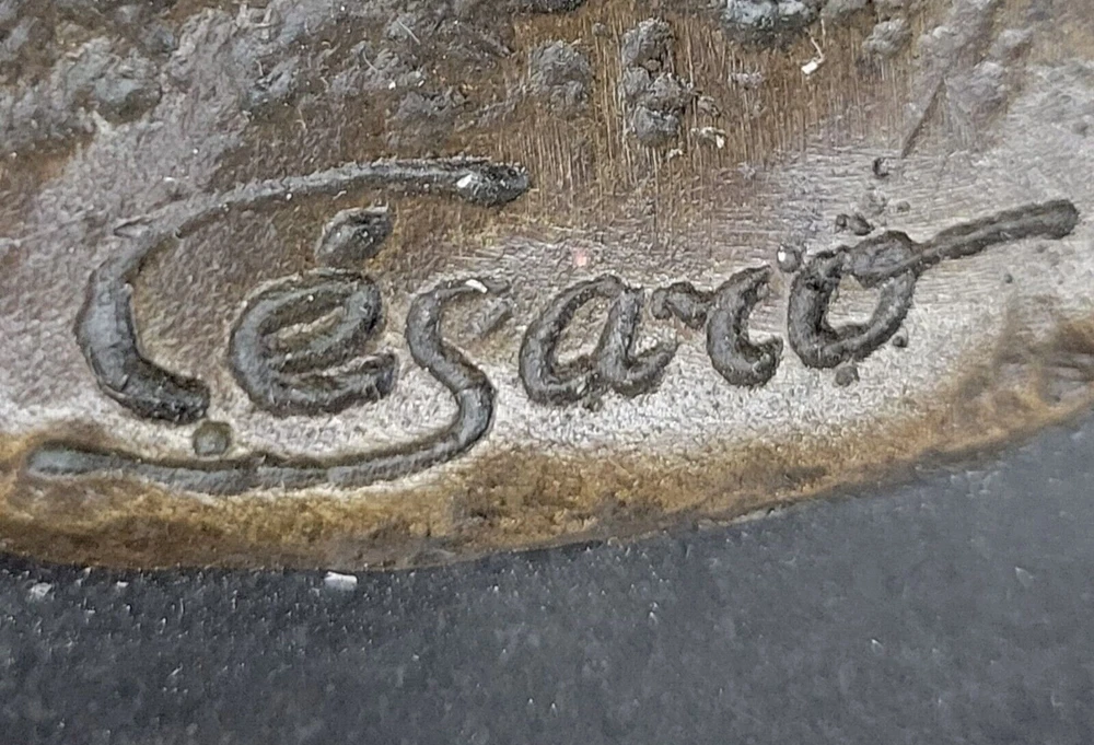 Condition : This sculpture is in perfect condition Bronze Dimensions with Marble Base: Height 8" X Width 5" Marble Dimensions: Diameter 5" Height without base:6.5" Weight:6 LBS Inventory:41EP7623714 This captivating bronze sculpture portrays a reclining nude figure enveloped in an aura of irresistible allure and desire. Crafted using the ancient and intricate lost-wax casting method, the sculpture captures the essence of femininity and sensuality. The artist's attention to detail is evident in the meticulous rendering of the female form, making this piece a celebration of the beauty of the human body. The seductive allure of the sculpture is further enhanced by the choice of a brown patina finish, which adds depth and character to the artwork while ensuring its long-lasting preservation. As the viewer beholds the figure lying on a black marble base, they are drawn into a world where desire and passion are palpable. The artist Cesaro's signature lends authenticity to this exquisite work of art, emphasizing its uniqueness and collectible value. Whether displayed in a private collection or as a statement piece in a public space, this bronze sculpture invites viewers to explore the captivating realm of sensuality and desire. It is a testament to the enduring appeal of the female form and the artist's ability to convey complex emotions through the medium of bronze sculpture. Art Deco Sculpture Sexy Naked Woman Erotic Nude Girl Bronze Statue Figurine Sale Video will open in a new window Using the eBay App? Paste link into a browser window: [isdntekvideo]