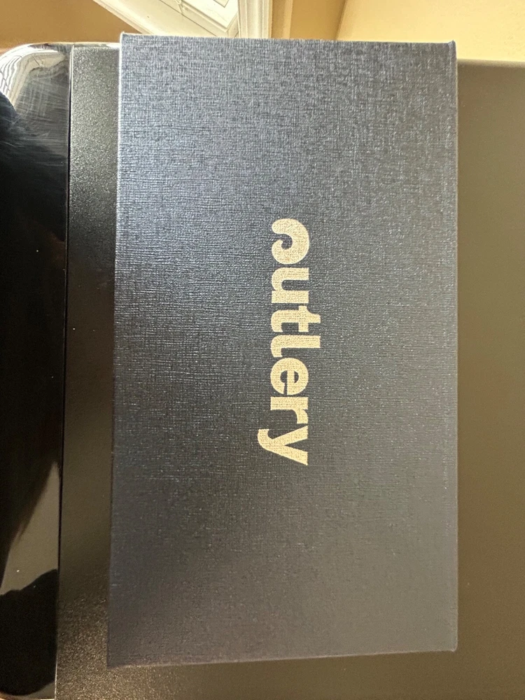 Nuevo cuchillo Outlery Damasco hoja con funda de cuero en caja