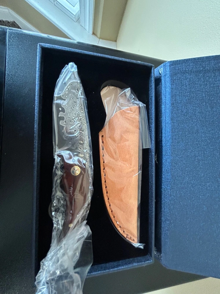 HomeNuevo cuchillo Outlery Damasco hoja con funda de cuero en caja