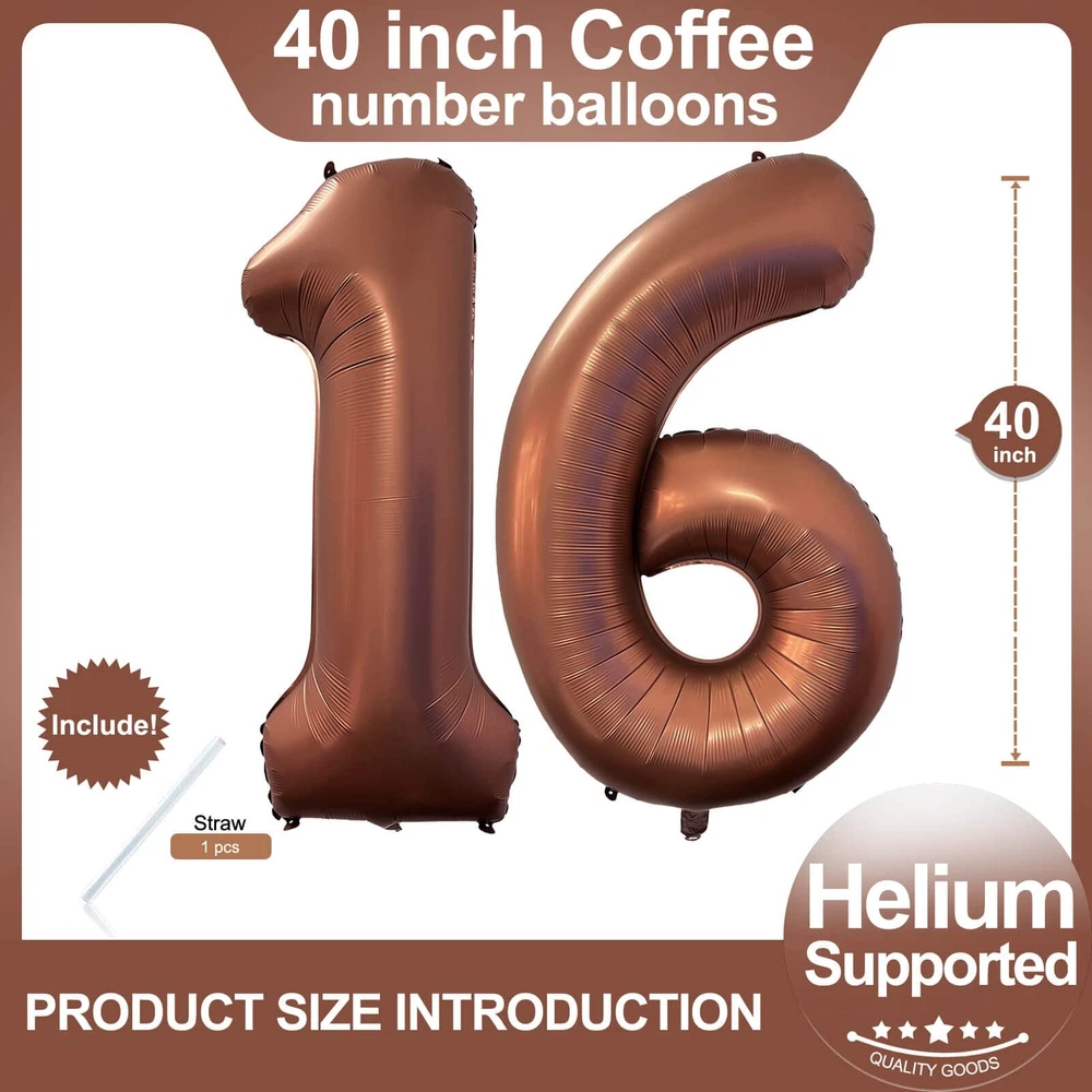 Number 16 Coffee Brown Balloons 40 Inch Giant Retro Coffee 16 Numer Foil Heli...