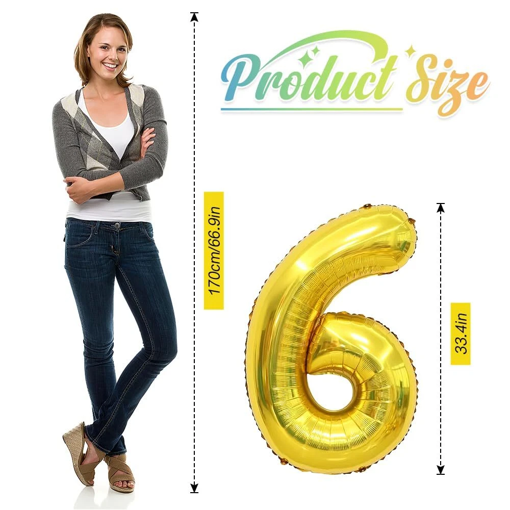 Number 6 Balloon Big Number Balloons Gold 6 Balloon Number Birthday Party Dec...