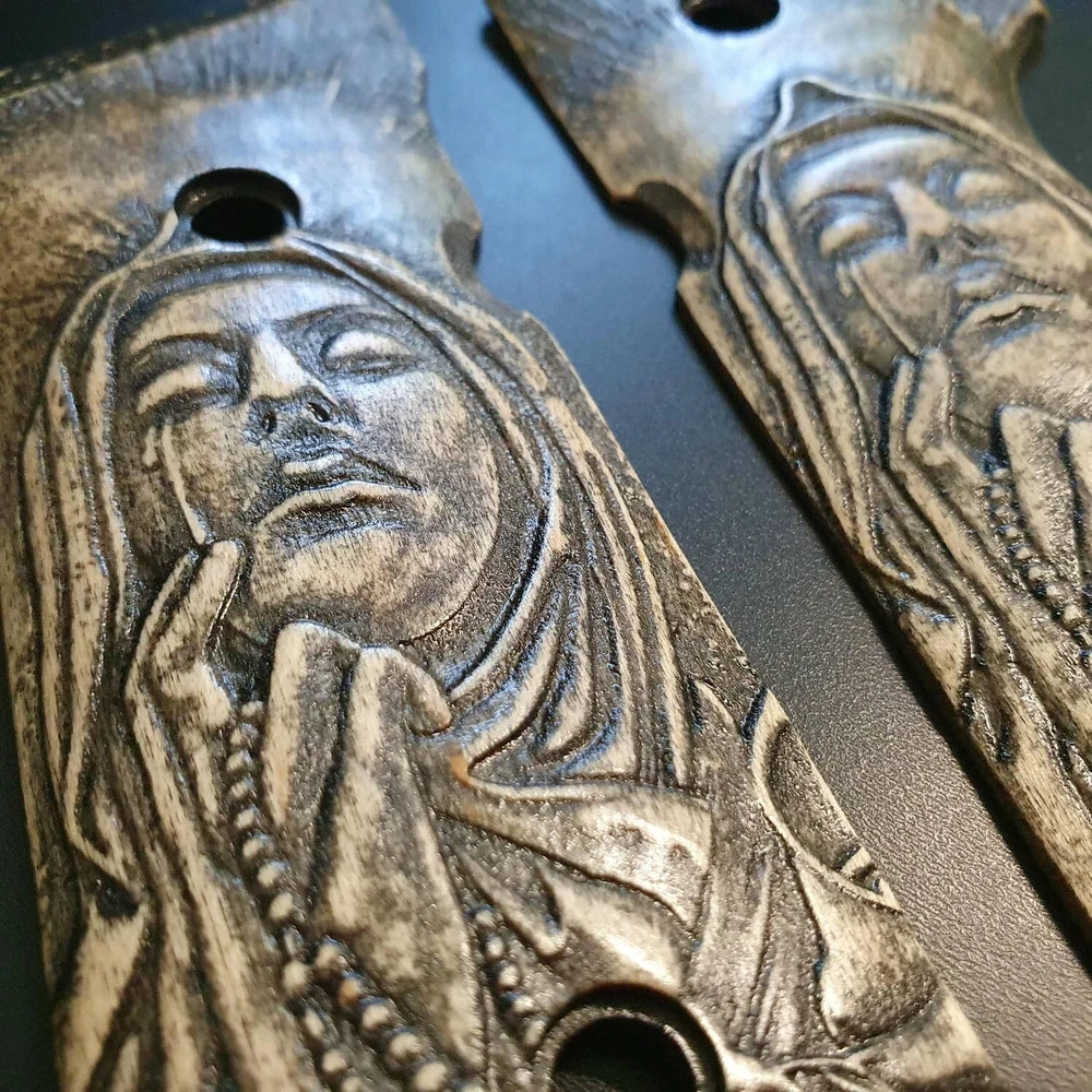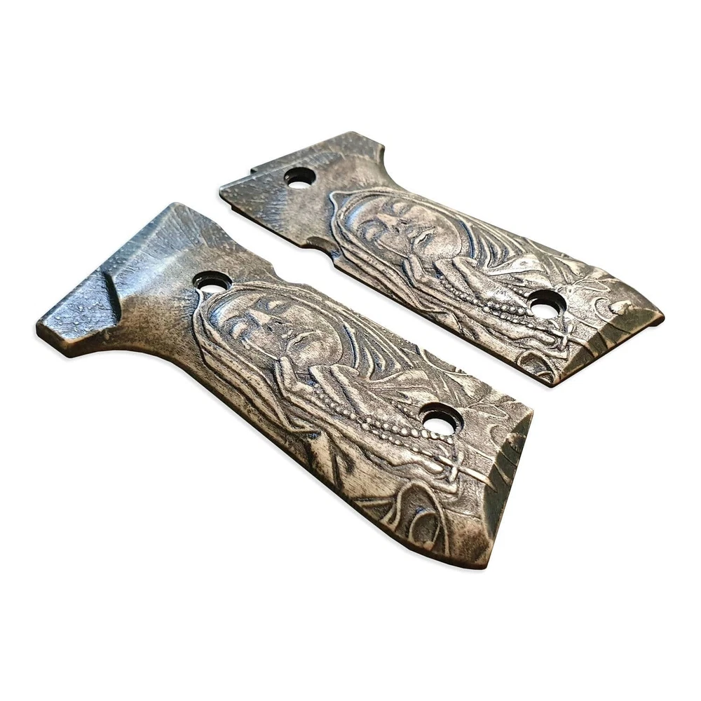 New Beretta 92, 92A1, 92G, 92FS, 96, 96A1, 98FS, 98A1, M9, M9A1 grips with "Nun" design. Carved from solid natural wood - Cut by CNC. Grinded, painted and oiled by hand