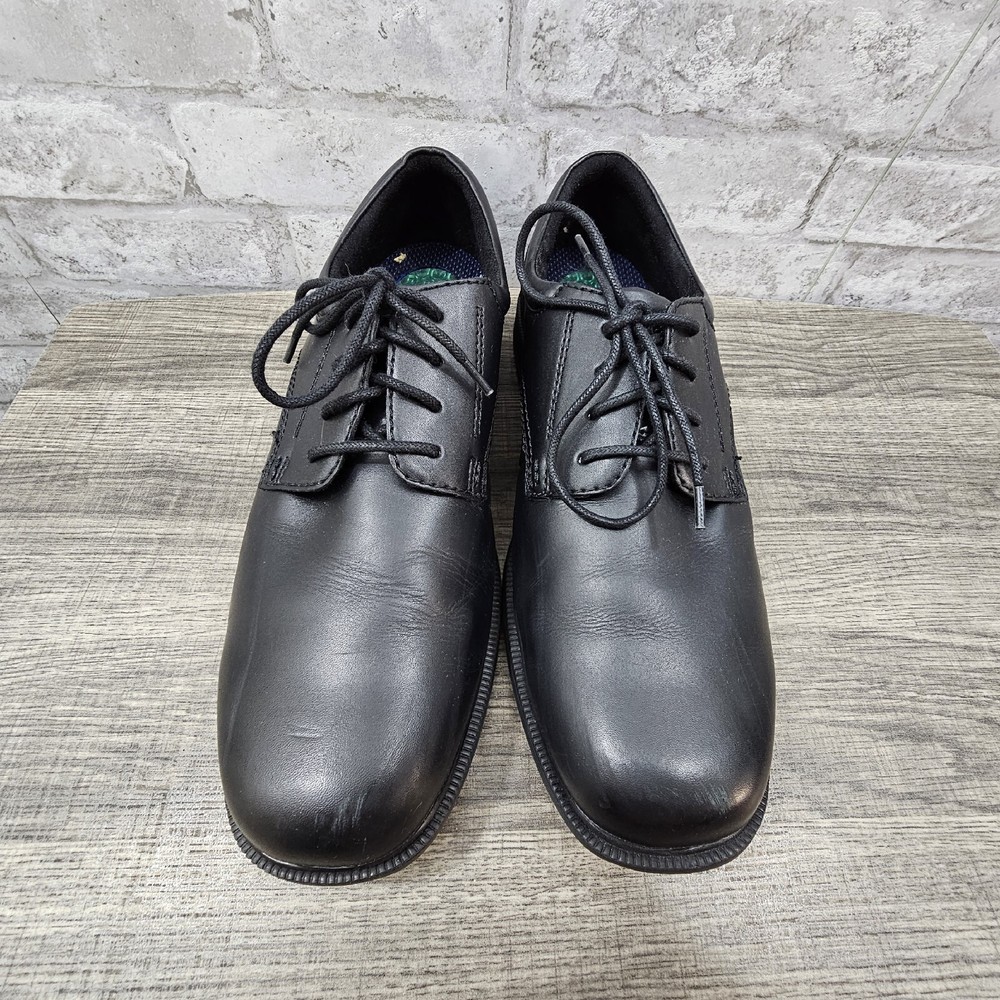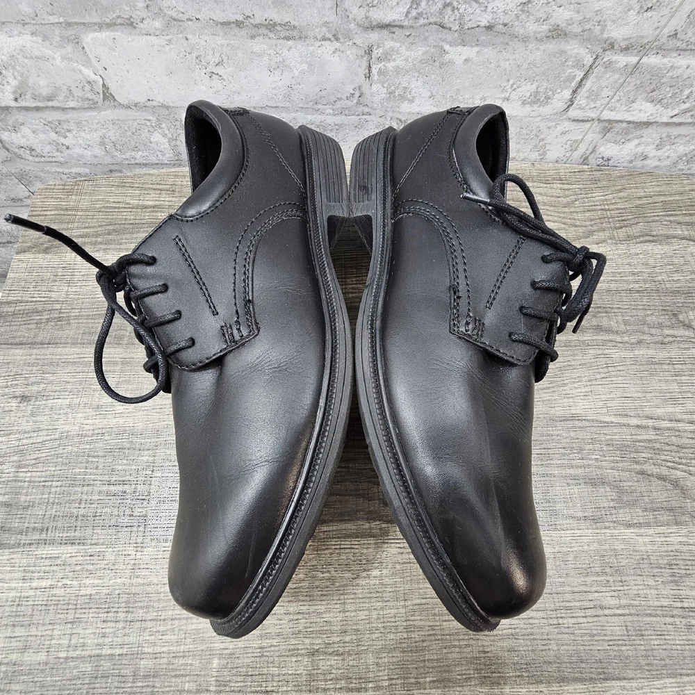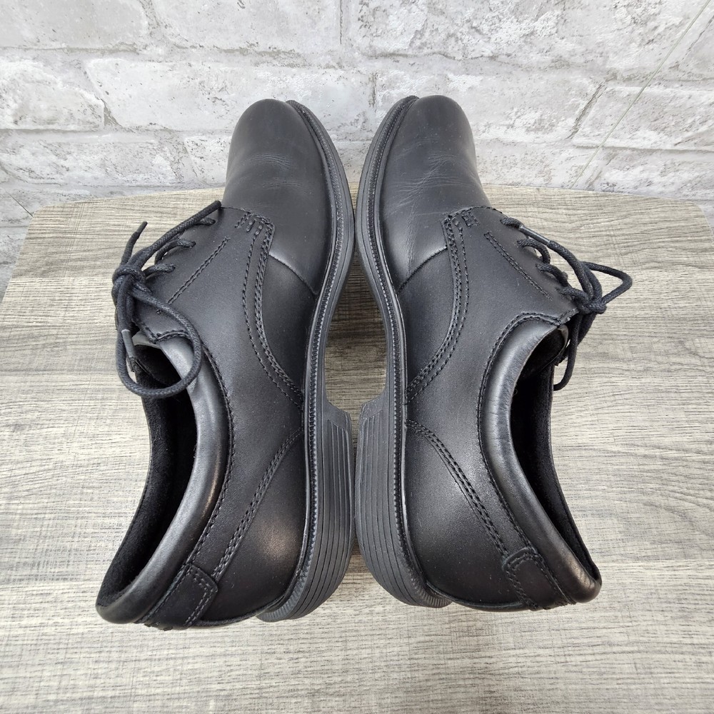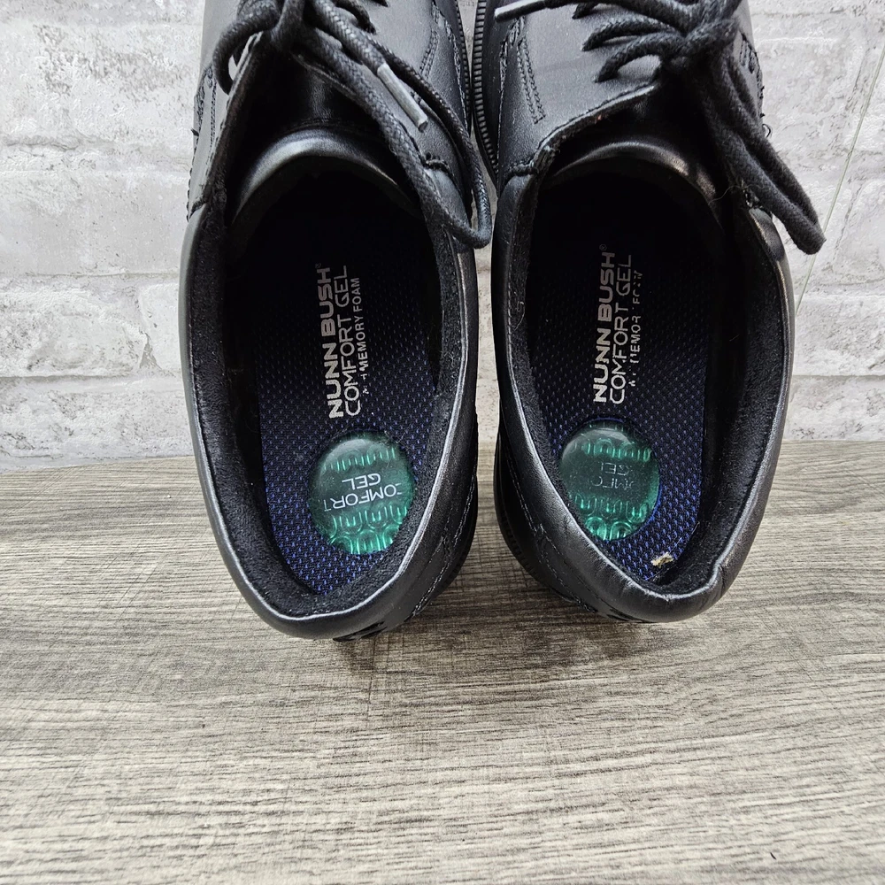 Nunn Bush Kore Pro plain toe oxford comfort gel shoes mens size 12 black. Slip resistant. Excellent pre-owned condition. No rips, tears or visible stains. See photos for best representation.