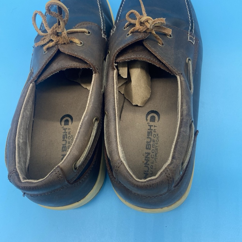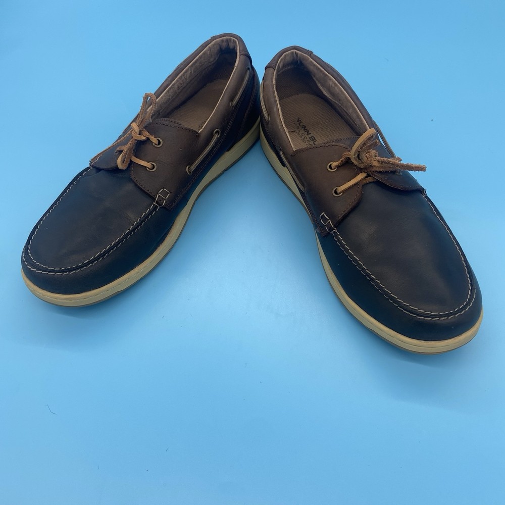 Season: Fall, Spring, Summer, Winter Department: Men Vintage: No Upper Material: Leather Brand: Nunn Bush Occasion: Casual Features: Comfort, Cushioned Type: Casual Model: Nunn Bush Schooner Shoe Width: M Color: Blue And Brown Style: Boat Shoe Toe Shape: Round Toe Customized: No Closure: Lace Up Pattern: Two Tone Lining Material: Fabric Insole Material: Foam Country/Region of Manufacture: China US Shoe Size: 13 Outsole Material: Rubber Product Line: Schooner