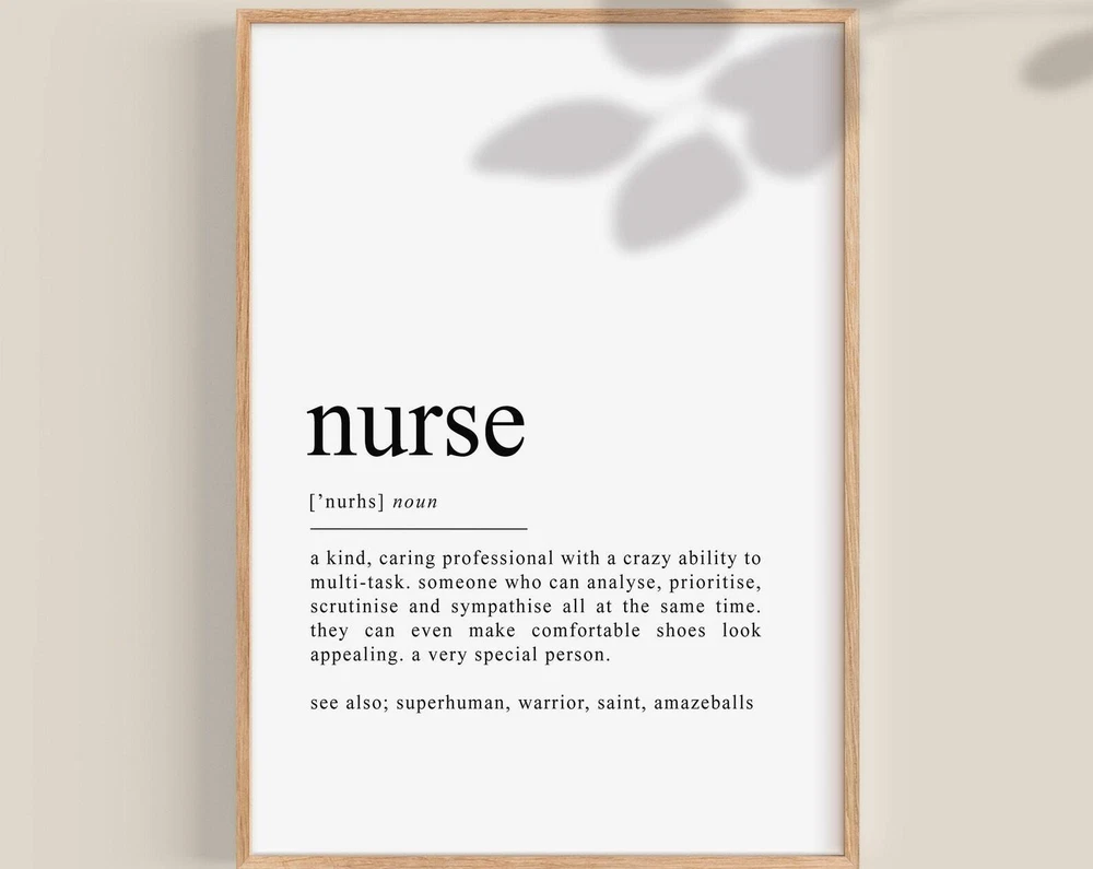 Nurse Definition Print Nurse Poster Nurse Gift Nurse Birthday Gift Unique Nurse Graduation Gift Material: Premium luster photo paper Print type: Inkjet printing One side printed + The finish provides the highest possible resolution and color saturation + Lasts up to 200 years in color and 400 years in black-and-white + Printed on high-quality resin-coated photo base paper medium + Posters can be hung with double-sided tape, tacks, or framed + Hand washing with a gentle cry cloth is recommended for extended durability I will hand select the best choice of paper for your chosen design to ensure top quality results for a beautiful, bright and luxurious print. All prints are sealed in cellophane slips for protection during transportation, and are shipped in a protective cardboard envelope.