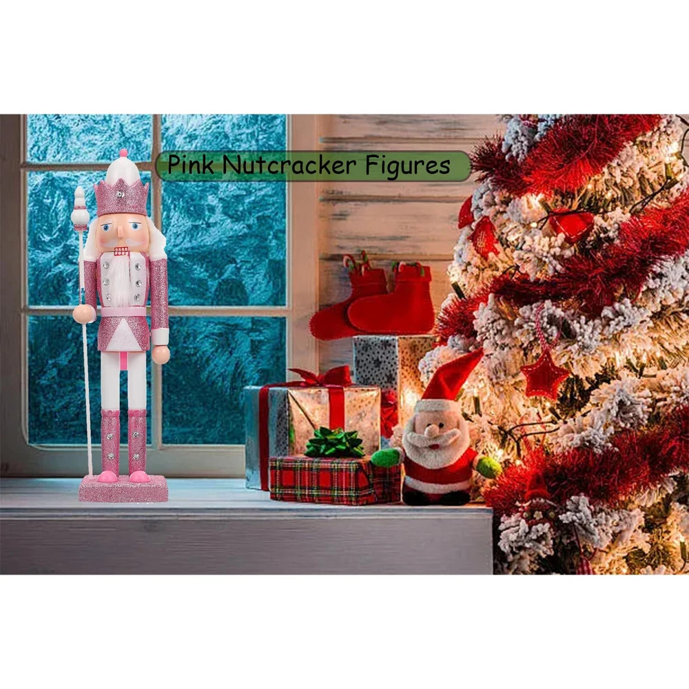 【Quality Wooden Material】- The Christmas nutcracker is made of quality wood with glitter appearance design, firm and sturdy, sustained and colorfast, the shiny items on the surface are hard to fall off; With a wide base, the nutcracker ornament can stand firmly on the table 【Optimal Size】 - In order to avoid the decorations as well as gifts being too big or too small, we set the size to 12 inches so that it will be easy to carry and can be placed on more occasions, such as desk,Christmas tree, Fireplace etc 【Wide Use of Application】- Our wooden nutcrackers add a festive touch to your home, office, store or other workplace, complementing your other Christmas decorations 【Ideal Gifts】- You can use handmade nutcracker figures to make some delicate handicrafts as ideal gifts to your friend, relatives, colleagues, classmates and neighbors on Valentine's Day, Christmas, New Year, birthday, etc., showing your love and care 【Christmas Nutcrackers】- Pink Nutcracker Figures Pink Christmas Decorations 12 Inch Pink Nutcracker Soldier Figure Decor Christmas Nutcrackers for Festival Party