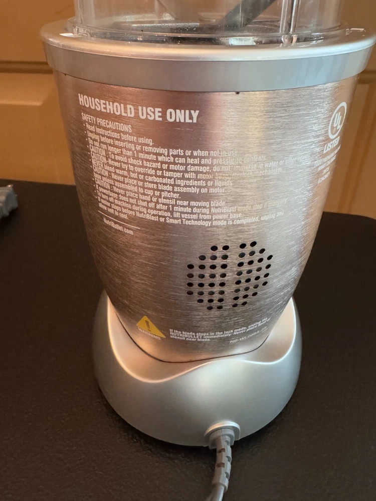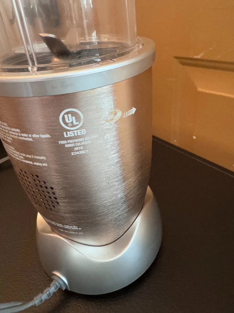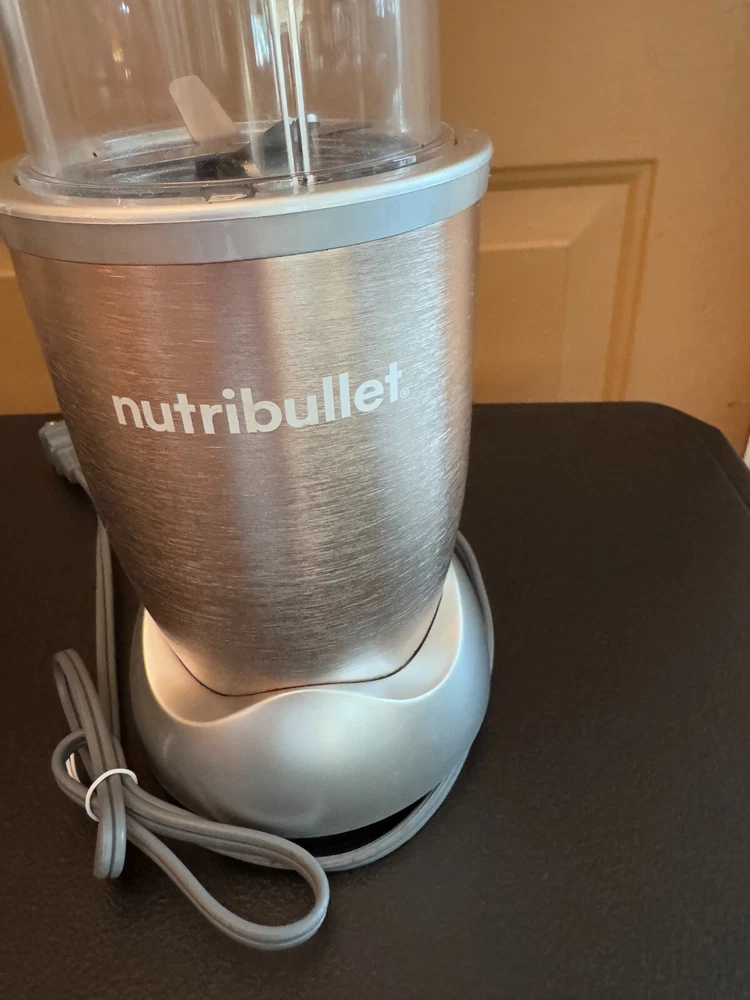 gtin13: Does not apply Color: Champagne Brand: NutriBullet UPC: Does not apply Power Source: Electric Number of Items: 1 Type: Personal Blenders Model: Not Specified Seller Notes: “Fine working condition. Please see photos. You will receive that exact one.” Number of Speeds: 1 Material: Stainless Steel Appliance Uses: Fruit, Sauce, Juice, Frozen Drink, Dips & Spreads, Smoothie Features: Lightweight MPN: NB9-0901 Number of Settings/Programs: 1 Components Included: Blender Power: 900 W Appliance Capabilities: Blend Capacity: 32 oz Number of Blades: 1