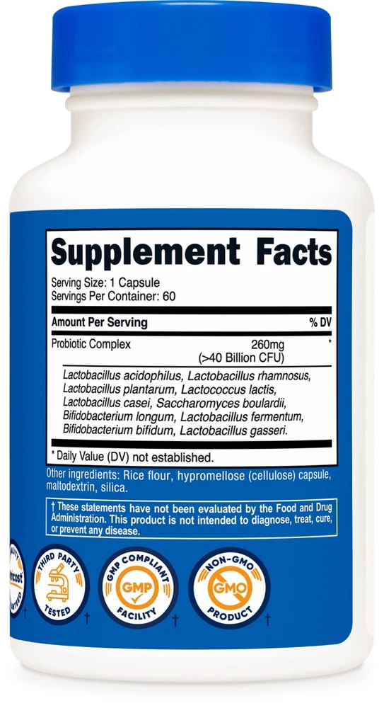Welcome to the official eSupplements eBay store! Nutricost Probiotic Complex (40 Billion CFU) (60 Capsules) - GMO-Free, Gluten-Free Probiotic Complex - 40 Billion CFU 60 Convenient Capsules: Each bottle contains 60 capsules, providing a 60-day supply. Over 40 Billion CFU Per Serving – Formulated with more than 40 billion CFU per serving for your daily needs. Third-Party Tested & GMP Compliant – Produced in a GMP-compliant facility and rigorously tested by a third party for quality and purity. GMO-Free & Gluten-Free – Crafted without genetically modified ingredients, and manufactured to be free of gluten Carefully Formulated – Designed to meet quality standards, this product is a dependable addition to your daily routine. Nutricost Probiotic Complex offers a probiotic blend designed to fit seamlessly into your wellness routine. Each bottle contains 60 capsules, with over 40 billion CFU per serving to provide a dependable source for your daily needs. Produced in a GMP-compliant facility and third-party tested, this product meets stringent quality and purity standards. Crafted to be both GMO-free and gluten-free, it reflects a commitment to clean and trusted ingredients. Elevate your daily regimen with Nutricost Probiotic Complex. High Quality Probiotic Complex! Q. What Role Do Bacteria Play in the Body? A. Bacteria play a critical and positive role in our bodies defense and in digestion. Harmless bacteria in our gut consume resources that we cannot, and leave the byproducts which we can use. In addition, these same bacteria keep populations of harmful bacteria in check by decreasing the available resources for harmful bacteria to use. Without these helpful bacteria, dangerous and antibiotic-resistant bacteria would grow in amounts that would pose a serious problem to our health. Q. What Benefits Can Probiotic Supplementation Provide? A. Nutricost's Probiotic Complex provides full digestive support as well as infection protection. When you take antibiotics or go through extreme stress the helpful bacteria in your system take a toll. Nutricost's Probiotic Complex replaces these helpful bacteria and gives you back the protection and digestive support they provide Q. Do I Really Need to Supplement with Probiotics? A. Most people will use antibiotics at some time in their lives, and everyone goes through periods of stress, both mentally and physically. When this happens, we are put at risk for infection and decreased digestive capability as the helpful bacteria in our gut die off. Only by taking probiotics can we be sure we are keeping up healthy bacteria populations and staying safe from disease. Q. Why Should I Choose Nutricost's Probiotic Complex? A. Nutricost offers a competitive dose at an even more competitive price. In addition to offering 50 Billion CFU, Nutricost offers you the most important strains for the best Probiotic protection available. Q. Is there a return policy? A. We offer a 30 day money back guarantee from the time of delivery of your purchase. Any unopened products in resalable condition will receive a full refund of the product sale price. Customer is responsible for shipping costs. Up to one opened product can be returned for a full refund within that time period. No other opened or damaged product will be accepted. Please contact our customer service department using your eBay message system for instructions on how to return your product. Q. What are your shipping rates for the US? A. We offer Free Domestic shipping. Q. Do you offer international shipping? A. Shipping & Handling International: We have fast international shipping available to most countries. Rates may vary by location and order size. International customers (anyone outside the U.S. - including Canada & US protectorates) should be aware of and are responsible for all additional fees associated with duties, taxes, customs, and other costs incurred from shipping internationally. Your purchase includes courier fees only ***Please be aware it is against U.S. Law to underestimate the value of your package on the customs form. ***Please be aware we will not refund any international package that is refused. These additional costs vary depending on your location. Please refer to your local customs office to estimate these fees. ***Attention Alaska & Hawaii Customers Shipping may take up to 4-5 Business days