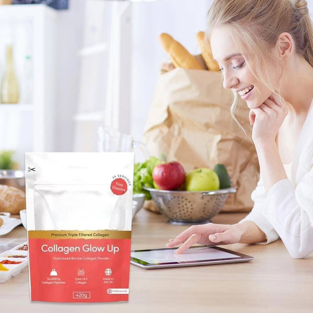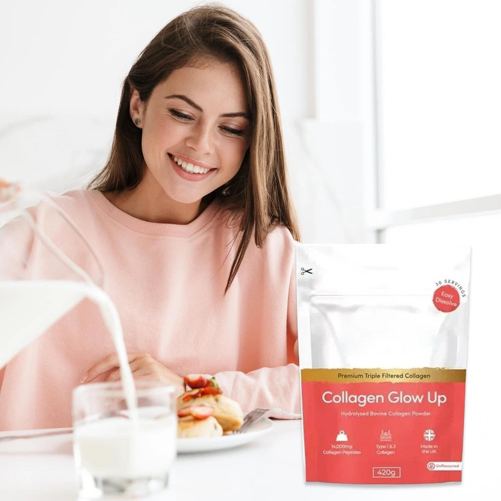 Nutrition geeks Collagen Glow Up Powder New & Improved 14000mg 420g 30 serving Product Description Intense Hydration Complex: Supports skin's natural repair process with high-dose protein, and a formula designed for perfect absorption, and lasting hydration effects Natural Glow Promotion: Formulated to brighten skin tone and enhance moisture retention, this protein powder also boosts elasticity and promotes a vibrant, youthful appearance without artificial additives or harmful substances Hair and Nail Boost: Strengthens brittle nails, enhances hair resilience, and promotes natural shine for improved overall health and liveliness of hair and nails, naturally Movement and Health Focused: Protein Powder enhances movement comfort, while promoting flexibility, and supporting joint and bone health for daily activity needs Clean Nutrition Formula: Make sures safe consumption without artificial ingredients, delivers nutritional backing, mixes easily with drinks, and fits harmoniously into all dietary routines Formulated with organic and natural ingredients, this protein powder supports fast absorption and joint health, while acting as a daily supplement for men and women alike. Enhance your recovery after workouts, and maintain overall health with this travel-friendly product, designed for adults seeking moisturizing advantages and sustained energy. Specifications: Item Type: Collagen Brightening Powder Product Specifications: 420g Packing List: 1* Protein Powder Note: Due to different lighting and screen settings, the item color may be slightly different from the picture. Due to different manual measurements, please allow a 1-2cm difference in size.