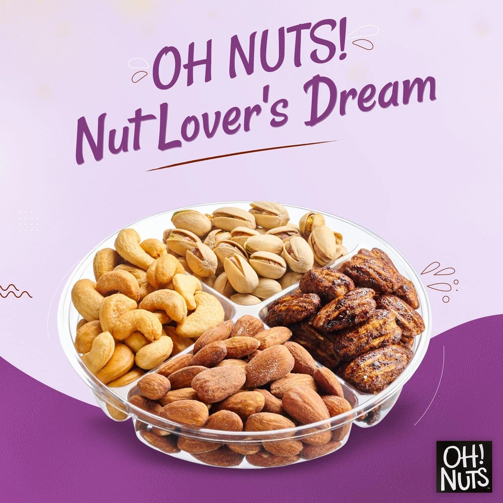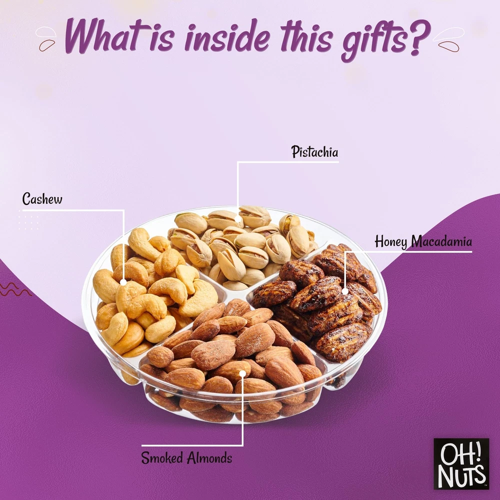 Nuts Gift Basket 4 Section Round Gift Tray | Freshly Roasted Assorted Nuts Pa...