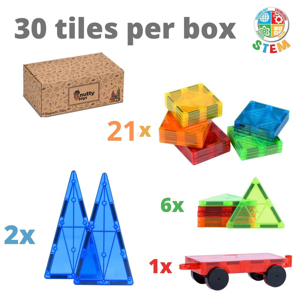 magnetic tiles for toddlers, kids & adults π‘π‘ DEVELOP BOTH SIDES OF THE BRAIN - let your child's IMAGINATION & CREATIVITY combine with HANDS-ON PLAY - with 30 pieces incl. a wheel chassis, squares & triangles kids can build anything from houses castles forts & towers to planes & trucks or even birds with the MAGNETIC BUILDING BLOCK BEGINNER SET; Combine open-ended play with these EASY-TO-CONNECT tiles to IMPROVE TACTILE & MOTOR SKILLS, understanding of geometrical shapes, magnetic polarities and acquire a strong sense of color β‘β‘ SPEED UP YOUR CHILD'S STEM DEVELOPMENT - empower your little architect & engineer to DREAM BIG & CREATE ASTONISHING BUILDINGS & VEHICLES - envisioning magnetics creations, planning resources and then executing it will PROMOTE CRITICAL THINKING, learning skills, mental growth & improve cognitive abilities - PLAY WITH FRIENDS and construct the most amazing ideas or run pretend play games - REVOLUTIONIZE HOW YOUR CHILD PLAYS, stimulate innovation, help kids focus on problem solving & fight ADHD π§²π§² STRONG & STURDY MAGNETS built into HIGH QUALITY TILES WILL LAST YOU FOREVER, no matter how much you build, play or tumble over your creations. Tiles are manufactured with child safety in mind & built with a reinforced internal structure. Made from CERTIFIED non-toxic ABS plastic, FREE of BPA, lead or heavy metals, each magnet tile is carefully inspected & features SPECIAL CHILD FRIENDLY EDGES; the tiles guarantee tons of frustration free fun - DESIGNED FOR SMALL HANDS ππ AMAZING GIFT IDEA FOR ALL AGES - from toddlers to preschoolers & tweens, mega tile sets make TOP BIRTHDAY GIFTS, best Christmas Stocking Stuffers, unique surprise last minute gifts for 3 4 5 6 7 8 or 9 years old children, popular Easter basket stuffer, hottest Valentines presents for kindergarten & school age boys & girls, great party toys & educational classroom activity toys - Offer your child HOURS OF ENTERTAINMENT & time off-screen - WHOM WOULD YOU GIFT THESE TO?