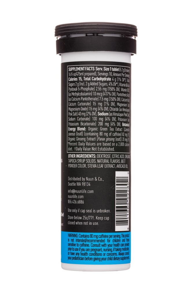 Nuun Energy All the benefits of coffee, with ‘Nuun’ of the shortcomings…. If you’re looking for a clean energy boost that has a long-lasting effect without jitters or crashes… that INCREASES your hydration instead of reducing it AND tastes super refreshing with a bit of fizz… then you’ll want to try the latest hydration drink from Nuun… Introducing Nuun Energy… Your new go-to in the morning after your coffee or in lieu of, you will get meaningful energy and focus boost with only 2g of sugar, 20mg of Ginseng, and 80mg of Caffeine. A clean energy boost with a lasting lift Nuun Energy jumpstarts mind and body with a proprietary plant-based energy ingredient blend. Who is Nuun? Nuun is a well-known pioneer in the hydration space. They were one of the first brands to separate electrolyte replacement from carbohydrates, eliminating unnecessary sugar and additives and allowing you to get pure hydration -- fast. They included only top-notch ingredients and continue to make some of the best-tasting hydration products on the market, especially if you're a fan of fizz! What Makes Nuun Energy Special? A clean energy boost with a lasting lift A refreshing energy blend to recharge your body and mind Convenient tablets (no powder, no scooping) that dissolve on their own without having to shake -- just drop into your water bottle, wait about 4 minutes to dissolve, and delicious hydration plus focus and energy are yours -- ZING! Fizzy, tasty, and loaded with electrolytes 20 mg of Panex Ginseng for focus, memory, energy, and overall wellness Caffeine PLUS L-theanine in the form of green tea extract for clean, stable energy that lasts without the ‘crash’. Blend of B12 and B6 vitamins to support cellular energy Extra ‘oomph’ for any adventure BONUS: Enjoy guilt-free hydration as Nuun is a climate-neutral certified company! Vegan, Gluten-free, Kosher, Informed Choice, Non-GMO When To Use Nuun Energy Nuun Energy is all boost and no crash. It’s made with clean ingredients that you can sip throughout the day without worrying about jitters and crashes. Perfect for your pre-adventure pump-up, as a refreshing substitute for your morning coffee or midday pick-me-up. Made with clean ingredients and available in 4 tasty flavors: Berry Blast, Ginger Lime Zing, Watermelon Burst and Tropical Punch Nuun Energy is perfect for daily use, whenever you need a lasting lift. It has a special blend of adaptogens and B-Vitamins to give you the focused, sustained energy you need to rock your workout or your workday. Feed Fav: Watermelon Burst How To Use Nuun Energy: 1. Drop a flavored Nuun Energy tablet of your choice into 16oz of water. 2. Wait up to 4 minutes for the tablet to dissolve. 3. Sip and savor or gulp and go. 4. Zing!