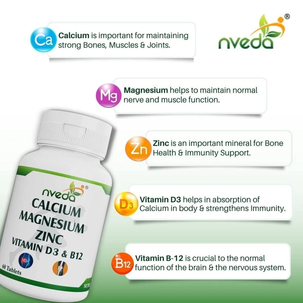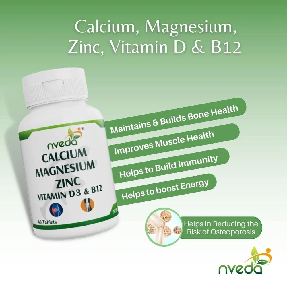 Formulation: Tablet Type: Extract Type of Diet: Ayurvedic Ingredients: Calcium, Magnesium, Vitamin B12, Vitamin D, Zinc Features: Natural, Organic Administration: Oral Scent: Blend, Herbal gtin13: Does not apply UPC: Does not apply When to Take: After Meal Brand: NVEDA Department: Unisex Main Purpose: Bone Health, Bones & Joints Active Ingredients: Vitamin B12, Zinc Number of Pills: 60 Country/Region of Manufacture: India