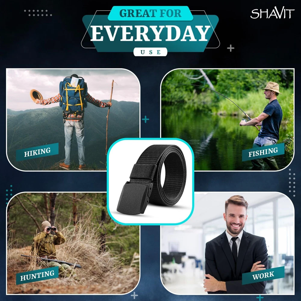Tactical Belt, Great for Outdoor Hiking, Fishing, Hunting, Work and Every Day Use Nylon Canvas Breathable Military Tactical Men Waist Belt With Plastic Buckle Airport Friendly - Metal-Free Plastic Cam Buckle Belts for Men and Women with No Metal Plastic Buckle for Work and Travel Adjustable Size - Hole-less belt means you can adjust the length freely