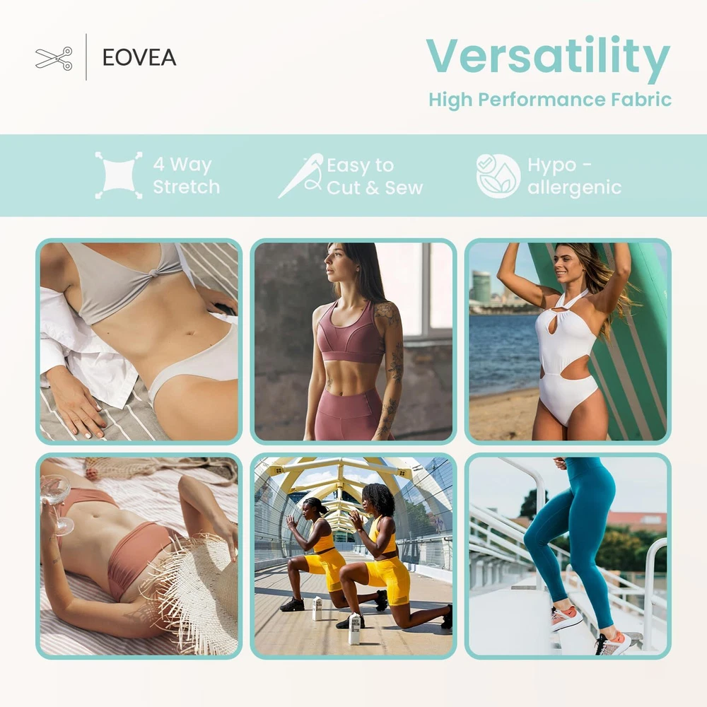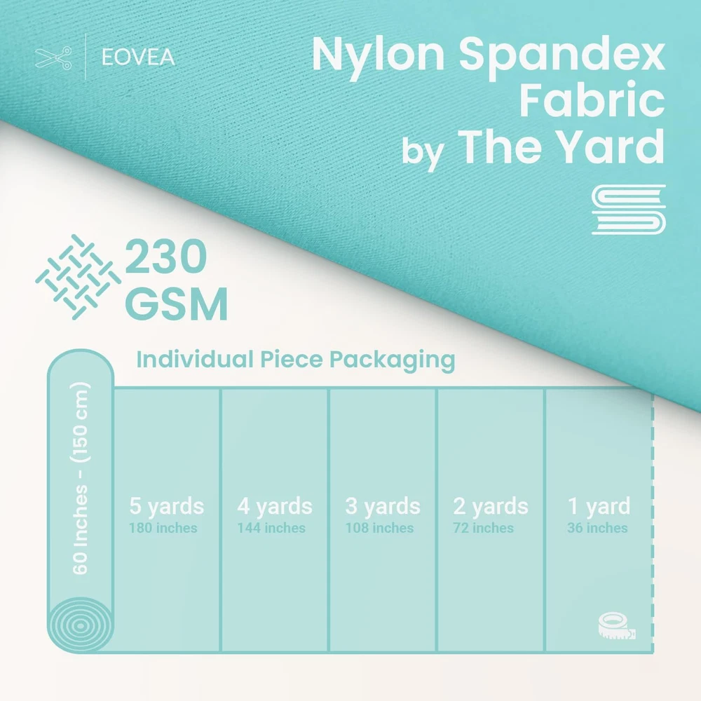 Individual Piece Packaging: Each fabric order is meticulously provided as separate pieces to match your specific needs. Choose your length and quantity—like 2 yards with a quantity of 2—and receive each as an individual piece, tailored for convenience and efficiency. Superior Fabric Blend: Crafted from a luxurious 80% nylon and 20% spandex blend, our fabric delivers exceptional flexibility and comfort. It's designed to accommodate every bend and stretch, making it ideal for high-movement activities like yoga and athletic pursuits. Advanced Stretch Dynamics: Our fabric features unparalleled 4-way stretch capabilities, offering expansive elasticity in every direction. This attribute ensures a perfect fit and enduring comfort for dynamic wear and demanding applications such as activewear and swimwear. Multi-Purpose Excellence: Beyond its primary uses in swimwear and athletic apparel, this versatile fabric is perfect for innovative fashion designs, home décor items like tablecloths, and practical applications such as seat covers. Its adaptability makes it a staple in both wardrobe and home. Optimized for Longevity: Engineered to withstand the rigors of active use, our fabric resists chemical wear from oils and lotions while maintaining its structural integrity. Follow our easy care instructions—hand wash in cold water and line dry—to ensure it lasts beautifully through seasons of use.