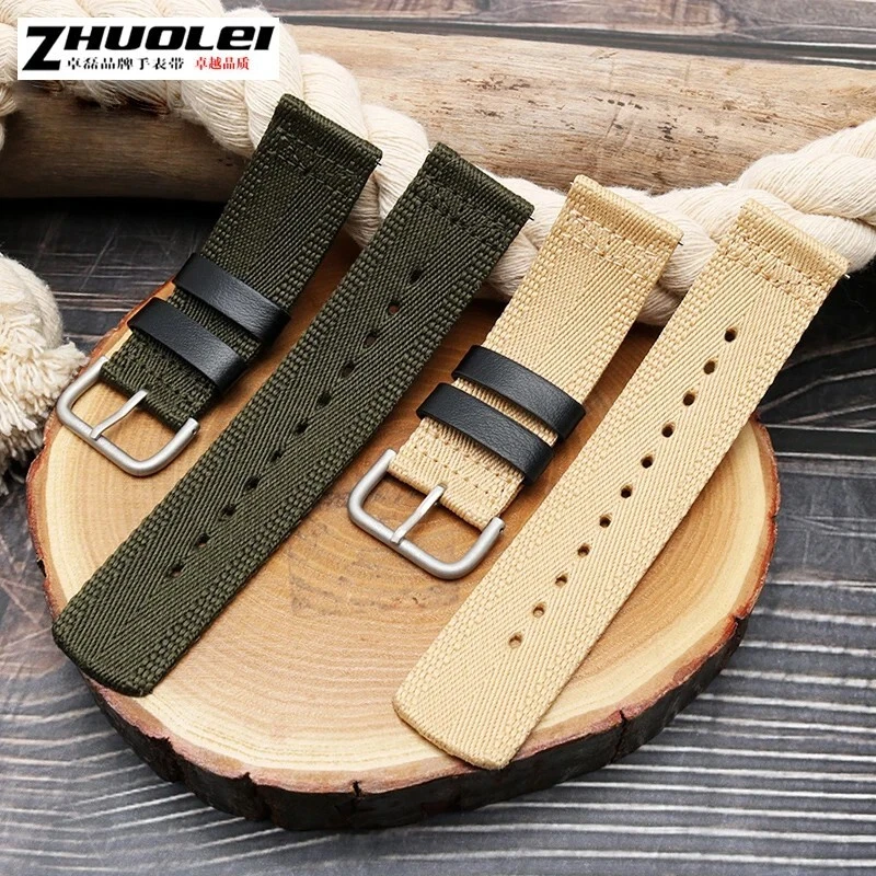 Description: Band Width: 24mm Material: Nylon Color: Black, Army green, Khaki, Blue Buckle: Stainless Steel Clasp Length: about 130+75mm Thickness: 2mm Type: Fashion Package: 1 x watch strap 1 x loading strap tools 3 x hand ears (pins)