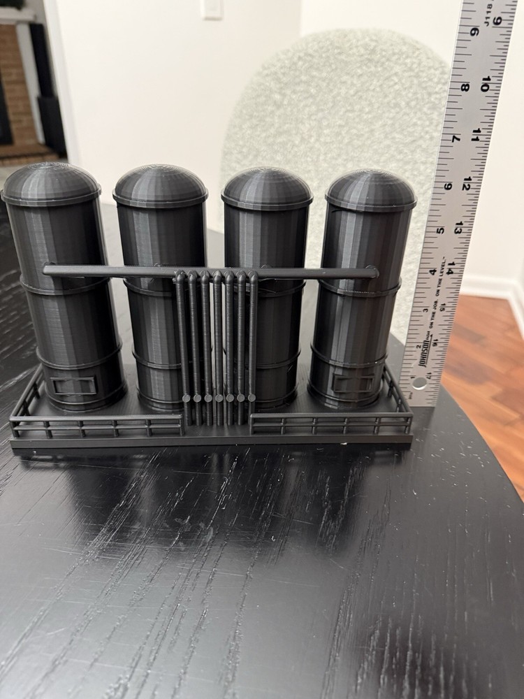 O Gauge Fuel Tank Silos - Oil Industry 1:48 Scale - Built And Assembled The piping is very difficult to get correct which is why I have had to increase price. Sometimes it takes me 3 or 4 prints to get 1 successful. Color will be grey or black