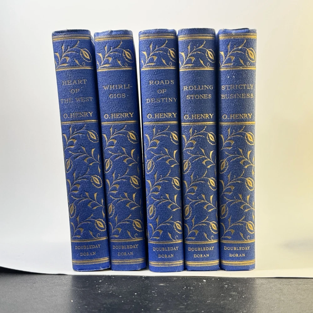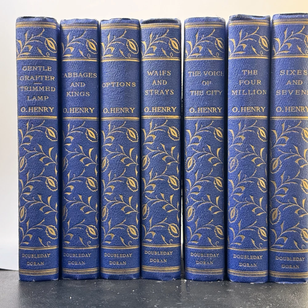 This beautiful antique 12-volume complete set of O. Henry stories, essays, and novels is in excellent condition, very clean, with some wear on the top portion of the spine. The gilt embossing is shiny and lovely. An excellent gift for book lovers or those who enjoy naturalist portrayals of everyday life of real people around the turn of the 19th century. William Sydney Porter (September 11, 1862 – June 5, 1910), better known by his pen name O. Henry, was an American writer known primarily for his short stories, though he also wrote poetry and non-fiction. Porter's stories are known for their naturalist observations, witty narration, and surprise endings.
