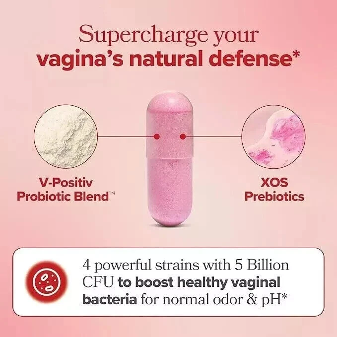 Four Lactobacillus strains are present in URO Vaginal Probiotic, together with XOS prebiotics to support the cultures' continued viability. With the aid of these probiotics, vaginal comfort, healthy odor, and pH balance can all be enhanced. The microbiome of the vagina is naturally diverse. The vagina's pH may become overly basic and more open to dangerous bacteria if there are insufficient Lactobacillus probiotics. This could cause discomfort and an unpleasant odor. 1) Science-backed ingredients to support healthy: Vaginal pH* Vaginal Odor* Yeast Balance* Vaginal Flora* 2) Recommended Usage Take 2 URO capsules once daily, with water. Keep your bottle in a cool, dry place. Consistency is key— URO is fully effective about 8 weeks in. 3) Vaginal Probiotic Ingredient Facts Serving Size: 2 capsules, 30 servings per container. V-Positiv Probiotic Blend™: Lactobacillus acidophilus, Lactobacillus rhamnosus, Lactobacillus reuteri, Lactobacillus fermentum 50 mg (5 Billion CFUs), Xylooligosaccharides (XOS) 400 mg Other Ingredients: Maltodextrin, Cellulose (Vegetarian Capsule), Natural Color