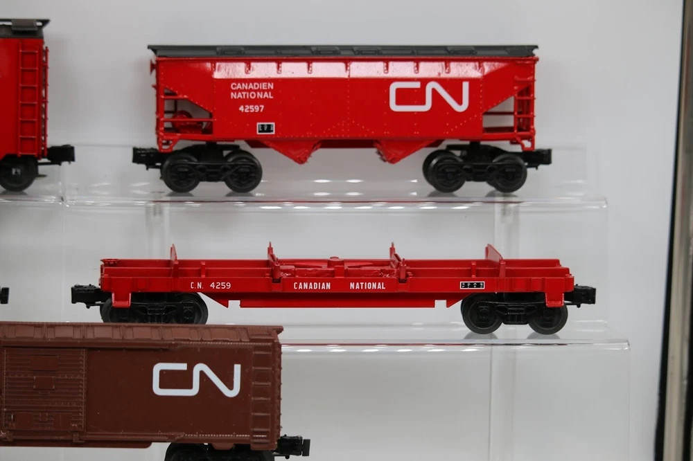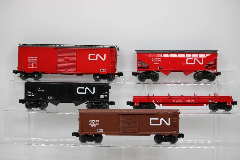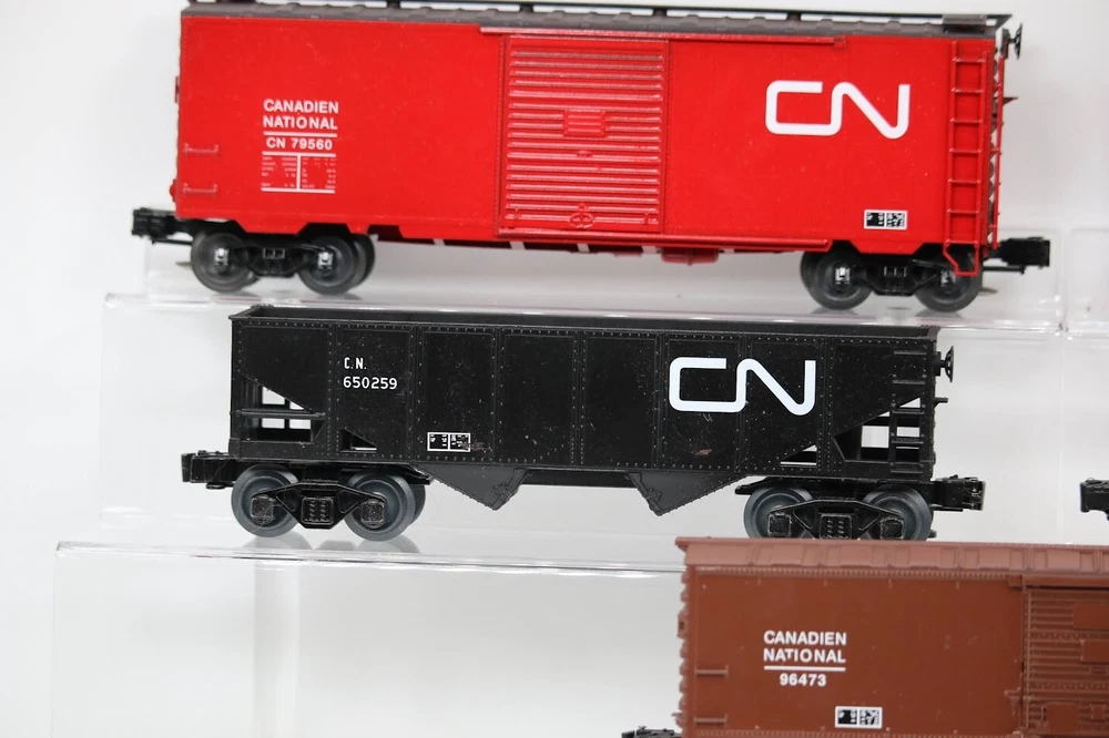 O Scale Trains Custom Canadian National Lionel/MTH Freight Car Set of 5 (Unique) SKU 007221 We ships USPS PLEASE see photos for detailed condition!! If you are purchasing more than one item from us and would like combined shipping, PLEASE request an adjusted invoice from us while still in the cart and BEFORE paying. eBay does not usually calculate combined shipping accurately and you might get overcharged. Please be aware that when we photograph items, we use lighting that will show the details well. Although we try to present the product as accurately as possible, the lighting may affect the overall look of the item by appearing lighter/darker or possibly a different hue than the actual item. Depending on the type of lighting you have in your home, there may be some differences between the photos and the actual item. If this is a concern of yours, please feel free to request additional photos made in natural lighting or ask for a more detailed description of the item PRIOR TO PURCHASE! PLEASE NOTE: We greatly appreciate your interest in our item for sale. We look forward to a pleasant, quick and satisfying transaction for everybody, so please note the following information before bidding. Thank you! ITEM DESCRIPTIONS: * We will try to describe items well and provide plenty of photos. Please review these carefully before bidding or purchasing. * Only the items pictured and described are what you will receive when purchased. * We will occasionally offer an item clearly marked "AS-IS". This means that we are not sure if it works because we are unable to test it for whatever reason. We will offer these at a discounted price then a similar "working" item. It is possible that these items will work fine, but it also is possible that these items are more useful for their parts. Please only bid on or purchase these items if you are well aware of this, as we will only provide refunds of actual item price (no shipping cost refunds) for these items. There may be pieces that are missing or broken including, but not limited to, couplers, brake wheels, steps, ladders, railings, etc. May need detailed cleaning. PLEASE LOOK AT THE PHOTOS CAREFULLY BEFORE PURCHASING!! * If you have any questions that aren't addressed by the descriptions or photos, please feel free to ask before you bid. SHIPPING: * We offer international shipping, if you have any questions please reach out. * We try to pack items as carefully as possible, but damage may occur during shipping. If you receive an item that was damaged in shipping, please contact us and we will work with you to resolve the problem. * We will combine shipping costs for all items the same buyer purchases from us within 2 days. Please wait to pay for items until you're done shopping with us. Please contact us if you're expecting to buy more items from us, or to have us adjust the shipping costs. * We will usually ship items out within 24 hours of payment being received Sunday through Friday at noon. We will notify the buyer if there will be a delay in shipping for some reason. Please allow additional time for holidays and weekends when the post office is closed. If payment is received after noon (EST) on Friday, the item might not be shipped until the following Monday. * We do try to recycle shipping materials as much as possible. RETURNS: We abide by eBay's Money Back Guarantee. We definitely want our customers to be happy with their purchase! You may return an item within 30 days of receiving it with the following guidelines: * If the item is defective or damaged (unless we clearly marked the listing "AS-IS"), the buyer will receive a full refund after the buyer returns it and it is received by us. Customers who falsely claim their item is defective, damaged, or not as described in order to receive a full refund and free return shipping will be permanently blocked from making future purchases from us. * If the item is as described (including "AS-IS" items) and the buyer decides for any other reason than defective/damaged to return it, only the actual price of the item will be refunded once it has been returned and it is received by us. The buyer will be asked to pay all original and return shipping charges. This includes all reasons other than defective/damaged, including wrong size, wrong type, changed mind, etc. All "AS-IS" items will fall into this category of return. Please make sure the item is what you want before purchasing it. * Please contact us before initiating a refund request. FEEDBACK: We always leave feedback at the end of transaction. We consider the transaction to be over when we receive feedback from the buyer confirming the item arrived satisfactorily. If you are unsatisfied with your purchase please contact us before leaving neutral or negative feedback. WE APPRECIATE POSITIVE FEEDBACK IF YOU ARE SATISFIED WITH YOUR PURCHASE! THANK YOU FOR YOUR INTEREST IN THIS ITEM!