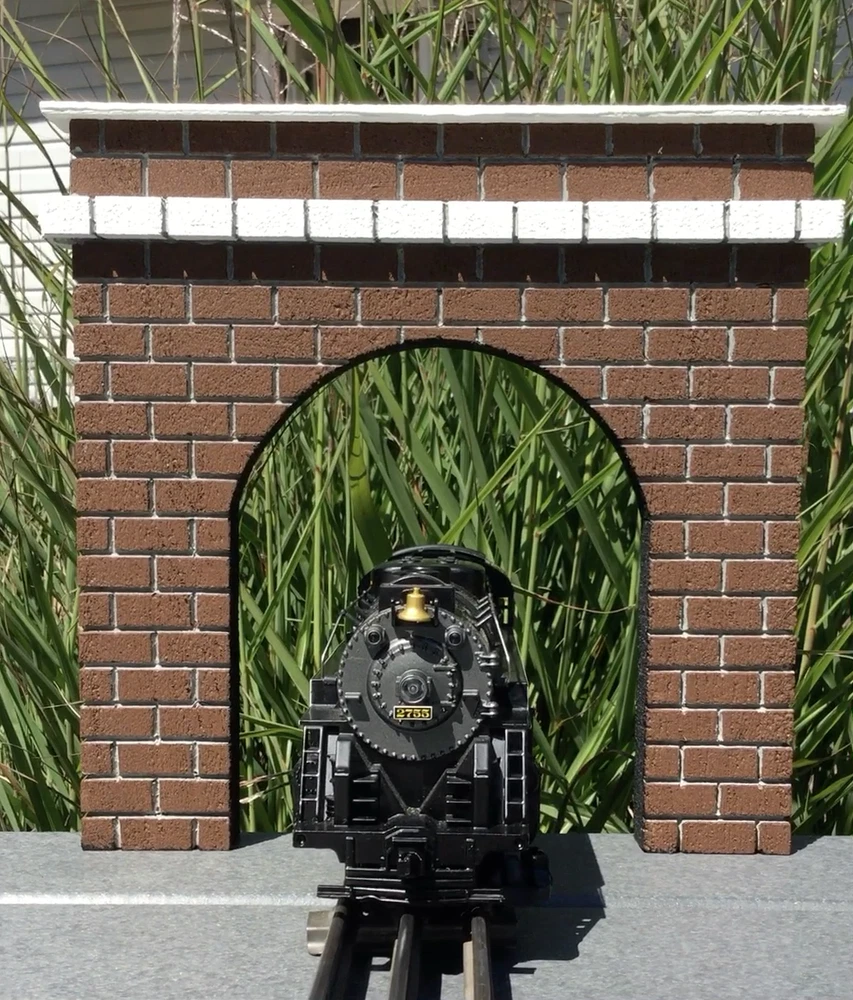 This O scale tunnel portal set of 2 is perfect for any model railroad enthusiast! Make your train layout come alive with these realistic brick/block tunnel portals for O gauge model trains, such as Lionel, MTH, or Railking. Each portal measures 9 1/2″ wide X 9 3/4″ high. Inside opening measurements are 5 1/2″W X 6 3/4″H. Hand crafted from polystyrene, painted brown with gray mortar joints, and accented with a white wooden cap. TRAINS NOT INCLUDED. Visit our O scale category to find other items to add to your model railroad O gauge train layout. This O scale tunnel portal for model railroad works perfectly for your Lionel FasTrack*, tubular track and other train track systems. We recommend hobby shops such as Mario’s Trains , Train World & Berkshire Station to find great deals on O scale trains too! *Lionel FasTrack offers an easy to use, snap together with no additional hardware. An innovative track to bring your layout to life like never before! Pairing up your trains with the right track is important. Lionel’s FasTrack is their most popular track system, featuring 3 rail construction and realistic roadbed. O scale model railroad scenery & accessories!