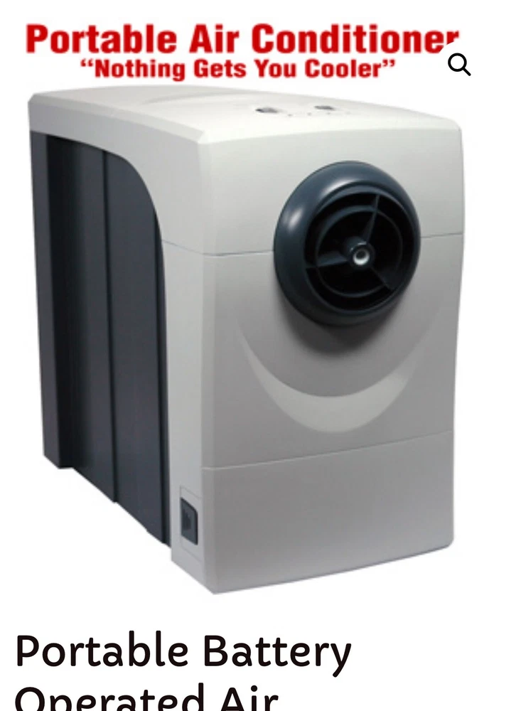 Stay cool all summer long with the O2Cool large portable battery powered air conditioner cool box with misting fan. This portable battery air conditioning fan operates on battery power or an AC home wall adapter (included) . A battery operated air conditioner fan is a must for those long hot summer nights or during those long days when the power goes out for hurricanes or earthquakes. This 12 volt O2Cool battery cool box fan goes anywhere and last for hours on a single set of alkaline batteries. Always plan ahead and stay cool! Great for portable RV air conditioner. This powerful long lasting battery powered fan has more cooling power than any other.