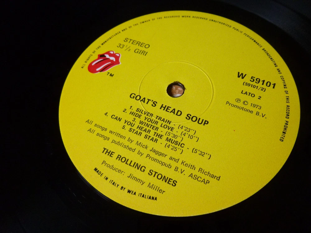 The Rolling Stones Goat's Head Soup 1973 COMPLETE WITH RARE OBI STRIP & INSERTS This is a superb copy of an original 1973 Rolling Stones Lp. With ALL inserts included!! Catalogue number: W 59101 Matricies: Side 1: 59 (etched) COC-59101-1 (stamped) With 29/8/73 xxx'd out and replaced with etched 24-6-75 Side 2: 59 (etched) COC-59101-2 (stamped) With 29/8/73 xxx'd out and replaced with etched 24-6-75 The Vinyl: 116g EX. I gave her a gentle vacuum clean and listened to the album, all the way through. She is in lovely condition-I have just listened to her all the way through and certainly was not disappointed-very, very nice sound reproduction, just a little occasional dust and static-with some very small, light marks, that's all...The audio was clear, with some light background crackle in the run-ins -but once the songs got going-BANG-rock n roll!!! FLAT, HEAVY AND SHINY TURN HER UP-I DID :) The Labels: EX+/NMint! They are beautiful canary yellow Stones labels in EXCELLENT+/NEAR MINT condition...Only carry one incredibly light spindle mark, which is only visible when angled towards the light and really looking or it! Strangely has made in Italy in the rim text..?... NO writing 1st pressing labels Official stamp to side 1-I think this was for tax purposes.. MAGICAL The Gatefold cover: EX. With just minor rubbing to the front and back.....She has been stored lovingly for all these years...The edges have some light rubbing, as does the spine, but I did not find any splits anywhere. She is the very 1st pressing, being unlaminated and made from heavy card. The Tongue in the bottom right corner has the "TM" next to it on the back panel. With the inner gatefold picture having the "....PRINTED IN JAPAN." Text to the left gatefold. The spine remains STRONG & LEGIBLE, but with some light rubbing. Corners are still incredibly strong. NO SPLITS NO WRITING NO FADING The Goats Head inner: NEAR MINT-no need to say anymore! The Lyric Inner: EX+ too!...Just a very small bit of rubbing of 2cm to one side..Again-no need to say anymore. ALL ORIGINAL So, all in all this is a rare JAPANESE pressing, with the heavy card GATEFOLD copy and with all inserts present too....Not forgetting the ulrta rare OBI strip too! SHE HAS BEEN VERY WELL LOOKED AFTER FOR 51 YEARS! Sounds great, looks great, IS GREAT! *FREE UK POSTAGE* This is a heavyweight package and will weight 750g once packed, so the postage has been changed accordingly. (Maybe subject to VAT when sold within the EU) *FREE TRACKED 48Hr UK POSTAGE* (Maybe subject to VAT when sold within the EU) ************************ POSTAGE PRICES ********************* *ALL MY POSTAGE NOW INCLUDES TRACKING* ALL MY PACKAGING IS RECYCLED AND RE-PURPOSED...MADE BESPOKE FOR EACH RECORD I SELL. UPDATED PRICES FROM JAN 2024. **I WILL SEND WITHOUT INSURANCE/TRACKING BUT YOU NEED TO SEND ME IN WRITING YOU WANT THIS AND ARE HAPPY TO ACCEPT THE LIABILITY IF IT GOES MISSING** OUR POST OFFICE IS BACK! SO I CAN USUALLY GET THE RECORD IN THE POST THE SAME DAY YOU BUY IT...AT THE LATEST THE FOLLOWING DAY :) 1 Lp UK: £FREE 1 Lp Europe up to 500g: £9.95 (£16 Tracked) I DO NOT POST TO RUSSIA OR BELARUS 1 Lp World Zone 1 (Everywhere else apart from Australia, NZ & USA) 500g: £14(£19 Tracked) 1 Lp World Zone 3 USA: £21 FOR TRACKED POSTAGE (thanks to the post office re-zoning USA to the most expensive on July 1st) 1 Lp Australia/NZ up to 500g: £21 1 Double Lp UK: £FREE 1 Double Lp TRACKED to Europe up to 1kg: £18 Double Lp World Zone 1 (Everywhere else apart from USA, Australia & NZ) 1Kg: £25 Double Lp World Zone 3 TRACKED TO USA: £29 (thanks to the post office re-zoning USA to the most expensive on July 1st)..I HAVE SINCE FOUND OUT THE REASON FOR THIS IS THE INCREASE OF 'THE LAST MILE TARRIF' OF %100 BY USPS. 1 Double Lp TRACKED to Australia/NZ up to 1kg: £29 7" Singles: 1 Single UK: £FREE 1 Single Europe up to 250g: £12 I DO NOT POST TO RUSSIA OR BELARUS 1 Single World Zone 1 (Everywhere else apart from Australia, NZ & USA) 250g: £14 1 Single World Zone 2 Australia,NZ up to 250g: £17 1 Single World Zone 3 USA World Zone 3 up to 250g: £17 *ALL MY POSTAGE NOW INCLUDES TRACKING* Thank you and good luck
