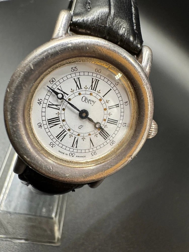 Obrey Solid Silver Women Watch Silver 925 Unpolished Case New lather strap