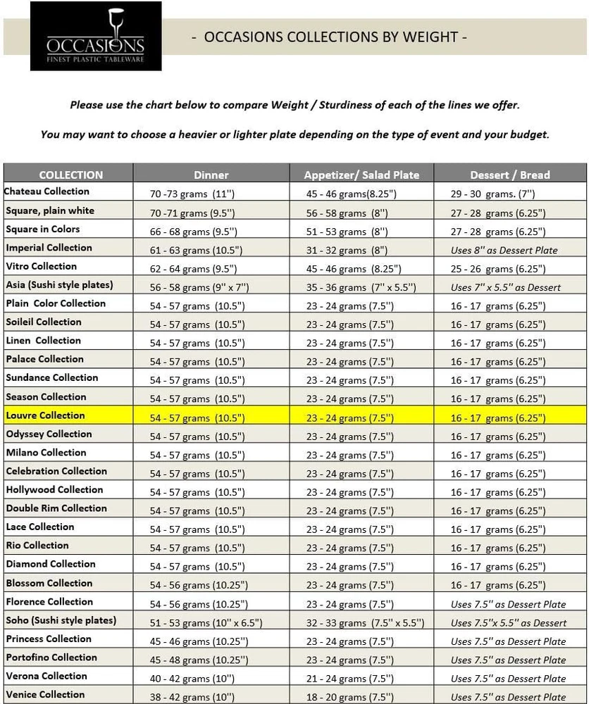 Store New Arrivals Add to Favorite View Feedback Contact " OCCASIONS " 50 Plates Pack (25 Guests)-Heavyweight Wedding Party Disposable Plastic Plate Set -25 X 10.5'' Dinner + 25 X 7.5'' Salad/Dessert Plates (Louvre in White W/Blue & Gold) Description Style Tableware Pattern Classic Theme Artistic Number of Pieces 50 Unit Count 1 Count Material Plastic Product Name plate Seasons All Seasons Is Microwaveable No Is Discontinued By Manufacturer No Package Dimensions 11.38 x 10.94 x 4.65 inches Is Dishwasher Safe No Item Weight 4.4 pounds Material Feature Disposable Occasion Wedding Special Feature Disposable Color Louvre White / Blue & Gold Finish Type Glossy Shape Round Recommended Uses For Product Appetizer, Desserts, Salad Size 50 Piece (25 Guest) Disposable Plastic Plates. Looks like real china. Ideal for holidays, large gatherings, weddings and special events, where you want an elegant and fancy look with the convenience of disposable. 50 Plates pack Includes: 25 x 10.5'' Dinner Plate + 25 x 7.5'' Appetizer/Dessert plates Design / Color : Louvre in White / Blue & Gold Made out of high gloss premium rigid disposable plastic. Single use, Recyclable and BPA free. Not microwave safe due to silver or gold decoration. Also available in packs of 120 pieces (60 + 60) / 240 pieces (120 + 120) Product Description ABOUT US We offer the best prices around on high quality products. Our E-store includes media such as books, movies, music and games while offering electronics, toys, sporting apparel, clothing, tools, general home, garden items and more. SHIPPING We are always working hard to ensure your package arrives as soon as possible. Please understand that some factors like weather, high postal traffic, and the performance of shipping companies are outside of our control. We offer free shipping to the lower 48 states and ship within 2 business days of payment, usually sooner. We do not accept P.O. Boxes. Please provide a physical address. For shipping outside of the continental USA, we only use eBay's Global Shipping Program.The item is shipped to KY and then sent to the rest of the world. International customers are responsible for all duties and taxes. Continue to check out in order to calculate costs for shipping the item to your country. Messages regarding eBay's Global Shipping Program MUST be directed at eBay EXCLUSIVELY. RETURNS We offer a 30-Day Return Policy on items which you are not completely satisfied with. You have the option for a full-refund or an exchange of the item. No returns are available on items shipped outside of the USA. PAYMENT We accept PayPal. CONTACT US This page content is yet to come Please ad us to your favorite seller and visit again later Thank You CUSTOMER SATISFACTION We try our very best to make sure every customer is completely satisfied. If there's a problem, message us! We're happy to help. WE ACCEPT Copyright © 2021 AutoDS. | All Rights Reserved