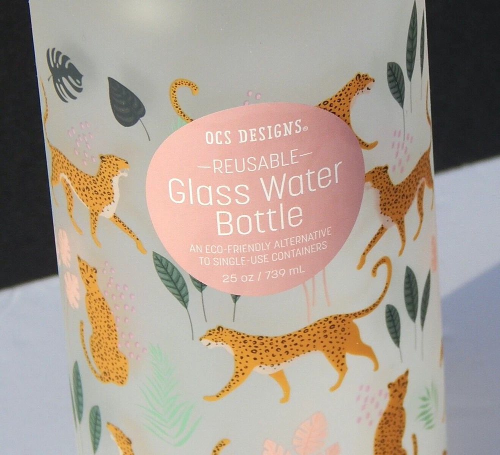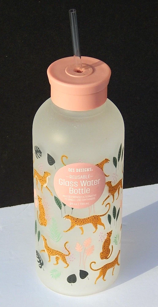 OCS DESIGNS REUSABLE GLASS WATER BOTTLE WITH STRAW ECO-FRIENDLY BRAND NEW 100% AUTHENTIC 25 oz / 739 ml Color: Matte/Multi. BPA FREE SHATTER-RESISTANT BOROSILICATE GLASS DISHWASHER SAFE ECO FRIENDLY- BPA FREE