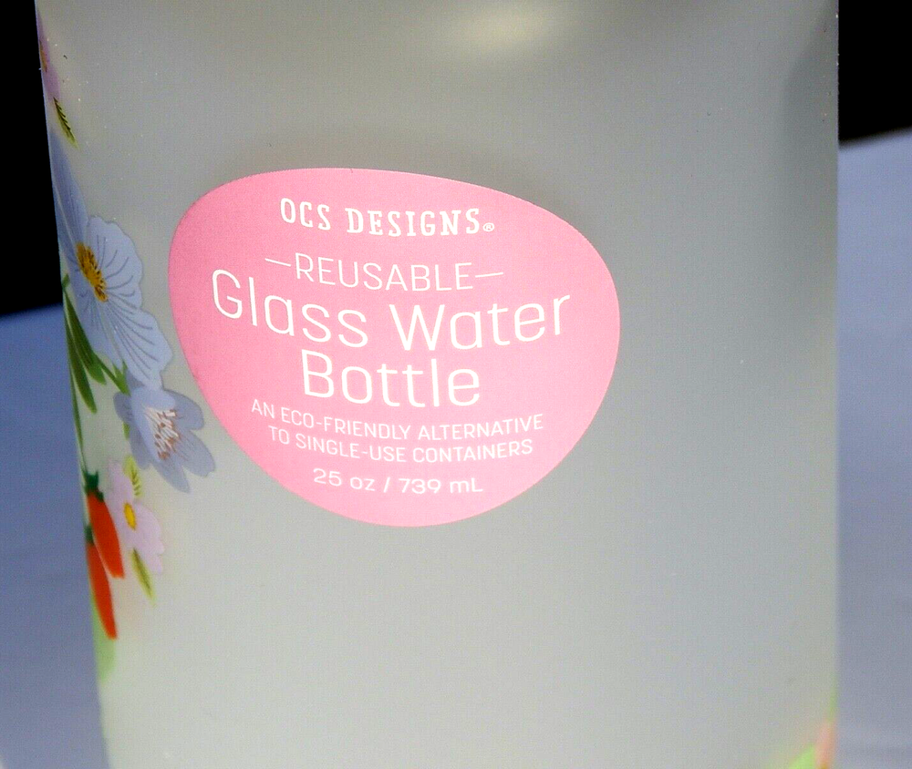 OCS DESIGNS REUSABLE GLASS WATER BOTTLE WITH STRAW ECO-FRIENDLY BRAND NEW 100% AUTHENTIC 25 oz / 739 ml Color: Matte/Multi. BPA FREE SHATTER-RESISTANT BOROSILICATE GLASS DISHWASHER SAFE ECO FRIENDLY- BPA FREE
