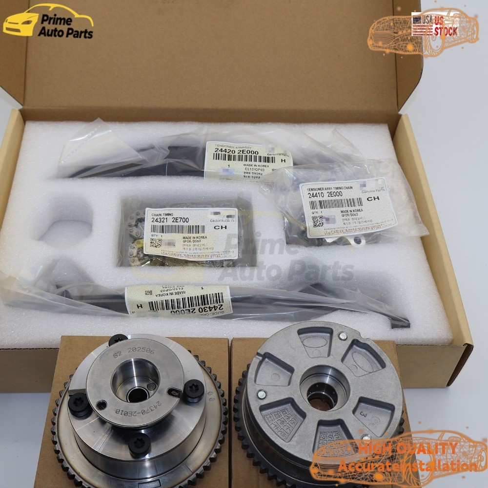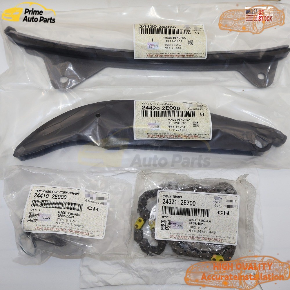 Store Categories Store Categories Ford Camera Timing chain Ignition coil Clock spring Jeep Honda Toyota Chevrolet Other OEM Hyundai Elantra Kona 2.0L 2017-2020 Timing Chain Kit w/ VVT Camshaft Gear US Product Description PRODUCT PARAMETERS Condition: 100% New Color: As Picture Type: Timing Kit OEM Part Numbers: 24300-2E706, 24321-2E700, 24350-2E700, 24370-2E020, 24410-2E000, 24420-2E000, 24430-2E000 PACKGE: 1x CVVT Intake Camshaft Gear Sprocket 24350-2E700 1x CVVT Exhaust Camshaft Gear Sprocket 24370-2E020 1x Primary Timing Chain - 5 PLATES VERSION 24321-2E010/24321-2E700 1x Timing Chain Guide Raild (Fixed) 24430-2J000,24430-2E000 1x Tensioner Arm 24420-2J000,24420-2E000 1x Timing Chain Tensioner 24410-2E000 FEATURES & BENEFITS 1.Our Product with reasonable price which saves up to 50% of your cost. 2.Brand-New 100% test, Professional MFG, High Quality Material, Easy Installation, OEM Standard. 3.Made of high-quality material, lightweight and long time to use. 4.Professional manufacturing, high sensitivity, high reliability. 5.Our items working more stable when you driving. 6.Good Choice for Avoiding Error Code Problem. COMPATIBLE WITH FOLLOWING MODELS: For 2017-2020 Hyundai Elantra Sedan 2.0L WITHOUT Turbocharged For 2018-2021 Hyundai Kona 2.0L WITHOUT Turbocharged For 2019-2021 Hyundai Veloster 2.0L WITHOUT Turbocharged For 2017-2022 Kia Forte Sedan 2.0L For 2017-2018 Kia Forte 5 Hatchback 2.0L WITHOUT Turbocharged For 2020-2022 Kia Soul 2.0L For 2021-2022 Kia Seltos 2.0L Payment Policy Shipping Policy Return Policy About Us Payment Policy Immediate payment is required upon selecting "Buy It Now" or upon checking out through the cart. Shipping Policy Items shipped from the United States are automatically shipped by eaby and are usually shipped within 1 business day. Items shipped from China are usually shipped within 2 business days, and no longer than 5 business days. Standard shipping for items shipped to the United States is free. Return Policy Please do not leave negative feedback or request a return before sending us a message, we will make sure you are satisfied. Send an email describing your problem and we will contact you within 12 hours to resolve the issue. About Us Welcome to our auto parts store! We attach great importance to the quality of each product and are committed to providing every customer with excellent pre-sales and after-sales services. Whether you are a retail customer or a bulk buyer, we will serve you wholeheartedly. You can always follow our store or contact us by email to enjoy more promotions and special discounts. Thank you for your support and trust, and look forward to providing you with the best products and services. Copyright © 2023 Dianxiaomi