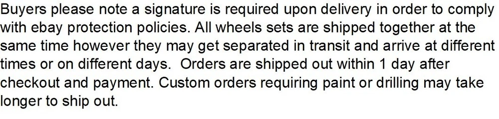 OE Wheels CV22 17x9.5 5x4.75" +54mm Satin Black Wheel Rim 17" Inch Finish: Satin Black Rims Size: 17x9.5 Bolt Pattern: 5x120.7 Offset: +54mm Hub: 70.3 Quantity: Four wheels and caps. Tires, lugs not included Condition: Brand new Fits: Chevrolet Camaro 1993-2002 Chevrolet Corvette 1988-1996 Chevrolet Corvette (front only) 1997-2004 Pontiac Firebird 1993-2002 WILL NOT FIT: C6 Z06, Grand Sport or ZR1 2005 - Current. Fitment is not guaranteed for vehicles equipped with upgraded or modified brakes, suspension or drive train. Returns are accepted within 30 days after date of purchase on all unused, un-mounted and new merchandise. All returns subject to a 20% restocking fee. All returns must be shipped back in original boxes and properly packaged All shipping damages must be reported immediately. Shipping costs are non refundable Product Use Disclaimer Use of this product is voluntary and the user accepts all responsibility for correct fitment and installation. The user agrees by installing the items that the manufacture, and the retailer are not responsible for problems with hubcaps, calipers, spacers, camber kits, coil over kits, hub rings replica 1LZ or altered suspension. Some models may require hub centric rings. By bidding you agree you have read and understood these terms. Buyers please note that a signature is required upon delivery. We ship out all four wheel sets together at the same time however they often get separated in transit and may arrive at different times or on different days. The delivery dates and times may not always be the same as the guaranteed delivery dates given by ebay. All orders are shipped out within 1 day after checkout and payment. Custom orders requiring paint or drilling may take longer to ship out. Please contact us directly via the ebay messaging system if you have any questions on your order or delivery.