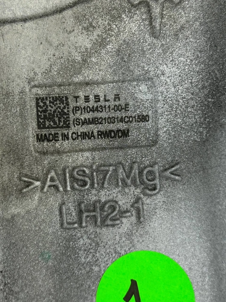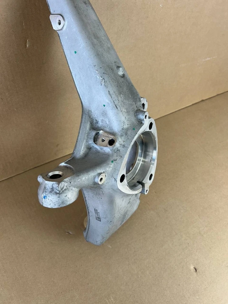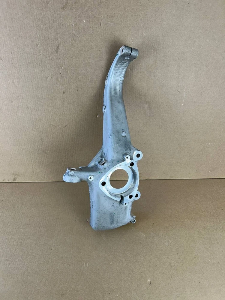 The OEM 2017 - 2023 Tesla Model 3 Front Left Driver Steering Knuckle 1044311-00-E is a replacement part designed specifically for Tesla vehicles. This steering knuckle is located on the front left side of the vehicle, specifically for the driver's side. It is an OE/OEM part number 104431100E, 1044311-00-H, 1044311-00-G, 1044311-00-F, 1044311-00-E, 1044311-00-D. This high-quality part is essential for maintaining the smooth and efficient operation of the Tesla Model 3's steering system, ensuring a seamless driving experience for the user.