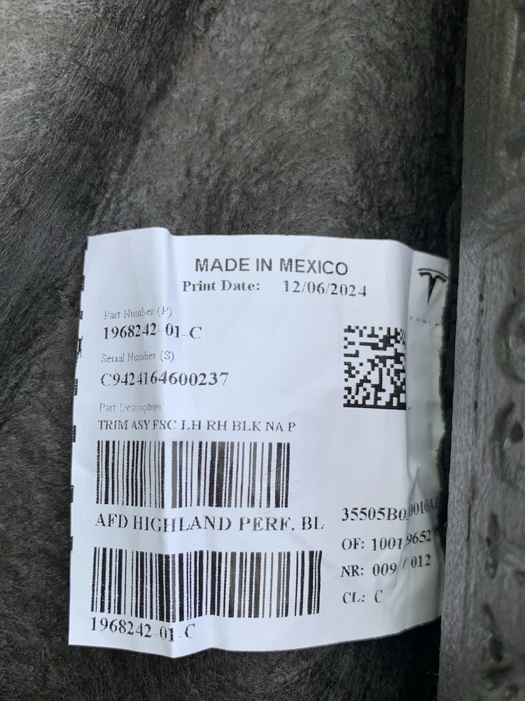 OEM 24-25 TESLA MODEL 3 PERFORMANCE SEAT CUSHION SOFT COVER TRIM 1968242-01-C