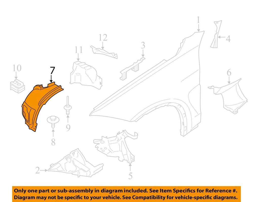 14-18 OEM BMW F15 X5 F85 X5M Right Passenger Fender Liner Wheel Splash Shield SKU: 36427 Brand: BMW Condition: Used Notes: Good tabs! Front section! MPN: 7290854 Manufacturer Part Number: 51717290854 OE/OEM Part Number: 7290854 Interchange Part Number: 7290854 We're on Instagram! Follow us! oe_mgarage All parts are used unless otherwise noted! Please understand that being that parts are used there may be some wear and tear & scratches etc. We cannot guarantee the condition of paint & or that paint color will be an exact match as yours. We try to show as much of the condition as possible through photos and notes! Original Car: 2014 BMW X5 Series: F15 Vin Number: 5UXKR2C54E0H33419 Mileage: 170628 Engine: 55B30M0 Transmission: 1 Part number: 7290854, 51717290854 Notes: Good tabs! Front section! SKU: 36427 Location: 114 IF ITEM IS MARKED AS FREIGHT SHIPPING AND YOU ARE SHIPPING TO A RESIDENTIAL ADDRESS OR A BUSINESS WITHOUT A FORKLIFT/LOADING DOCK Our shipping carriers charge extra fees for these deliveries! Please inquire BEFORE purchasing We will invoice you for it post purchase Thank you 90 day warranty on Engines purchased through eBay! 30 day warranty otherwise Engine is guaranteed to turn & the cylinder block is not cracked & and the cylinder head is not cracked Engine warranty details: Any maintenance items such as gaskets & fluids & seals & filters & spark plugs & belts & aluminum bolts (the ones holding valve cover & oil pan & etc.) are not warrantied and must be replaced Failure to replace valve cover gasket & oil pan gasket & new bolts for said gaskets voids the warranty Any aftermarket or performance parts or software present on the car voids the warranty Engine components such as timing chain & vanos gears & vacuum pump & chain guides are not warrantied. Other engine components external to the cylinder block and cylinder head are not warrantied. Any parts left on the engine are not warrantied and are for installation convenience only & buyer assumes all risk and responsibility reusing them. Overheating engine voids all warranties & Low oil or oil starvation voids all warranties for engine All work must be performed by a licensed & ASE certified mechanic shop or BMW dealership & failure will result in voiding all warranties Warranty covers the cost of the item! It does not cover shipping or labor! Used condition items may have minor imperfections. Please look at pictures for details! And understand that this is a USED part after all! Compatibility is the responsibility of the customer to ensure!! Please feel free to reach out with any questions!!