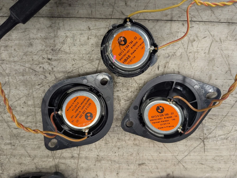 OEM BMW F30 F32 F33 F80 F82 M3 M4 Audio Sound System Speaker SET HARMAN KARDON SKU: 47007 Brand: BMW Condition: Used Notes: Set of 11! 30 Day Warranty! MPN: 9184794 Manufacturer Part Number: 65139184794 OE/OEM Part Number: 9184794 We're on Instagram! Follow us! oe_mgarage All parts are used unless otherwise noted! Please understand that being that parts are used there may be some wear and tear & scratches etc. We cannot guarantee the condition of paint & or that paint color will be an exact match as yours. We try to show as much of the condition as possible through photos and notes! Original Car: 2015 BMW 435i Series: F32 Vin Number: WBA3R5C58FK189577 Mileage: 72096 Engine: N55B30M0 Transmission: 1 Part number: 9184794, 65139184794, 65139226358, 9226358, 65139364956, 9364956, 65139169690, 9169690, 65139289965, 9289965 Exterior Color Paint Code: BLACK SAPPHIRE METALLIC (475) SKU: 47007 Location: X510 Notes: Set of 11! 30 Day Warranty! 30 DAY WARRANTY!! Warranty covers the cost of the item! It does not cover shipping or labor! Used condition items may have minor imperfections. Please look at pictures for details! And understand that this is a USED part after all! Compatibility is the responsibility of the customer to ensure!! Please feel free to reach out with any questions!!