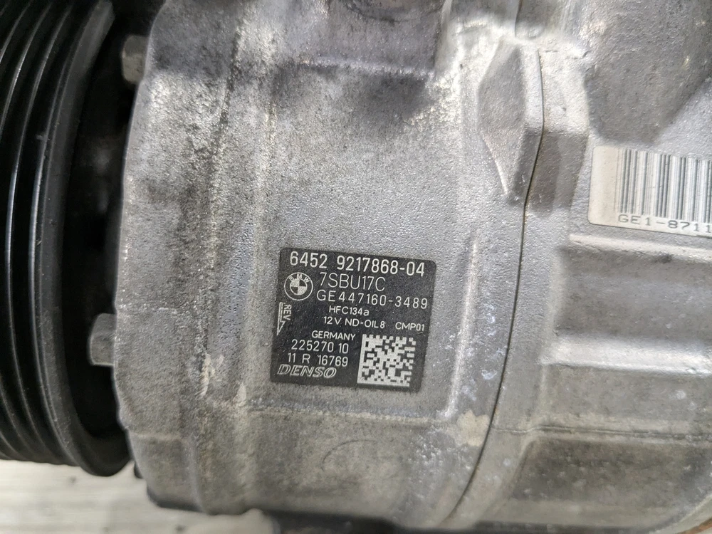 OEM BMW E70 F01 F07 F10 F13 F30 F32 N55 AC Compressor Clutch A/C Pump W/ Pulley SKU: 33497 Brand: BMW Condition: Used Notes: 30-day warranty! N55 Engine ONLY! MPN: 9217868 Manufacturer Part Number: 64529217868 OE/OEM Part Number: 9217868 Interchange Part Number: 9217868 We're on Instagram! Follow us! oe_mgarage All parts are used unless otherwise noted! Please understand that being that parts are used there may be some wear and tear & scratches etc. We cannot guarantee the condition of paint & or that paint color will be an exact match as yours. We try to show as much of the condition as possible through photos and notes! Original Car: 2015 BMW X5 Series: F15 Vin Number: 5UXKR0C57F0P00756 Mileage: 0 Engine: N55 Transmission: 1 Part number: 9217868, 64529217868 Notes: 30-day warranty! N55 Engine ONLY! SKU: 33497 Location: B524 IF ITEM IS MARKED AS FREIGHT SHIPPING AND YOU ARE SHIPPING TO A RESIDENTIAL ADDRESS OR A BUSINESS WITHOUT A FORKLIFT/LOADING DOCK Our shipping carriers charge extra fees for these deliveries! Please inquire BEFORE purchasing We will invoice you for it post purchase Thank you 90 day warranty on Engines purchased through eBay! 30 day warranty otherwise Engine is guaranteed to turn & the cylinder block is not cracked & and the cylinder head is not cracked Engine warranty details: Any maintenance items such as gaskets & fluids & seals & filters & spark plugs & belts & aluminum bolts (the ones holding valve cover & oil pan & etc.) are not warrantied and must be replaced Failure to replace valve cover gasket & oil pan gasket & new bolts for said gaskets voids the warranty Any aftermarket or performance parts or software present on the car voids the warranty Engine components such as timing chain & vanos gears & vacuum pump & chain guides are not warrantied. Other engine components external to the cylinder block and cylinder head are not warrantied. Any parts left on the engine are not warrantied and are for installation convenience only & buyer assumes all risk and responsibility reusing them. Overheating engine voids all warranties & Low oil or oil starvation voids all warranties for engine All work must be performed by a licensed & ASE certified mechanic shop or BMW dealership & failure will result in voiding all warranties Warranty covers the cost of the item! It does not cover shipping or labor! Used condition items may have minor imperfections. Please look at pictures for details! And understand that this is a USED part after all! Compatibility is the responsibility of the customer to ensure!! Please feel free to reach out with any questions!!