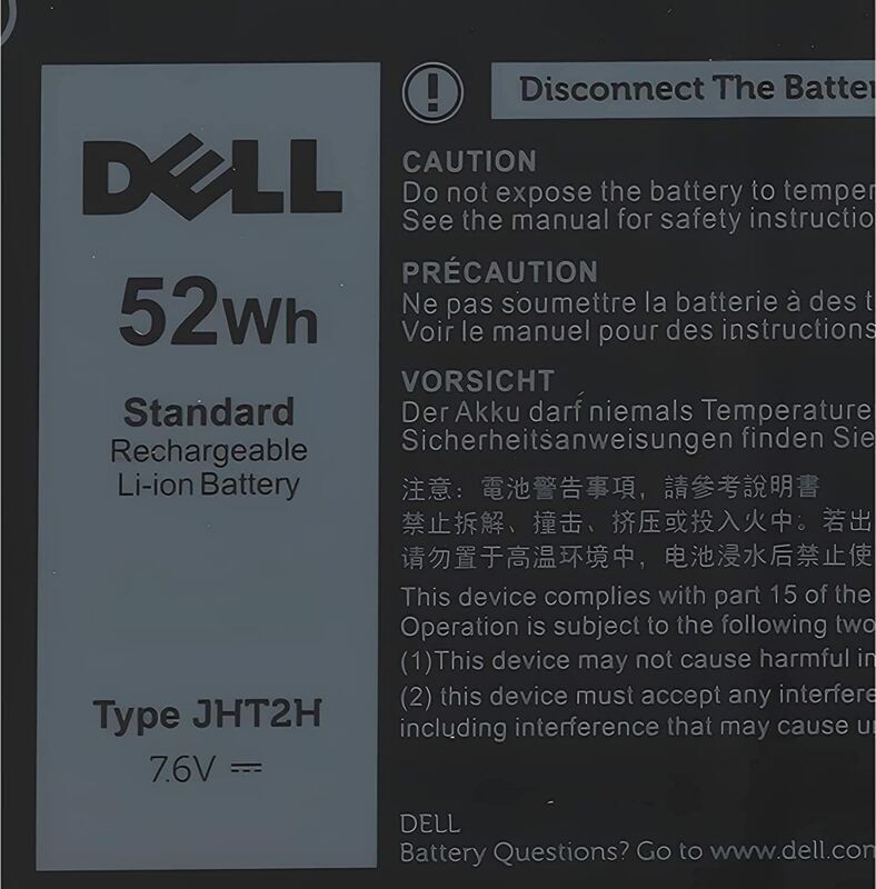 Battery Type: Li-Ion Color: Black Battery Capacity: 52WH Country of Origin: China Compatible Brand: For Dell Compatible Model: JHT2H Voltage: 7.6V Compatible Product Line: For Dell Latitude Type: Battery Brand: Dell Manufacturer Warranty: 1 Year