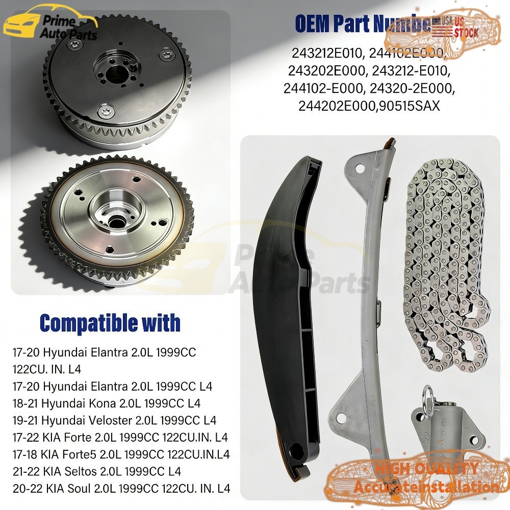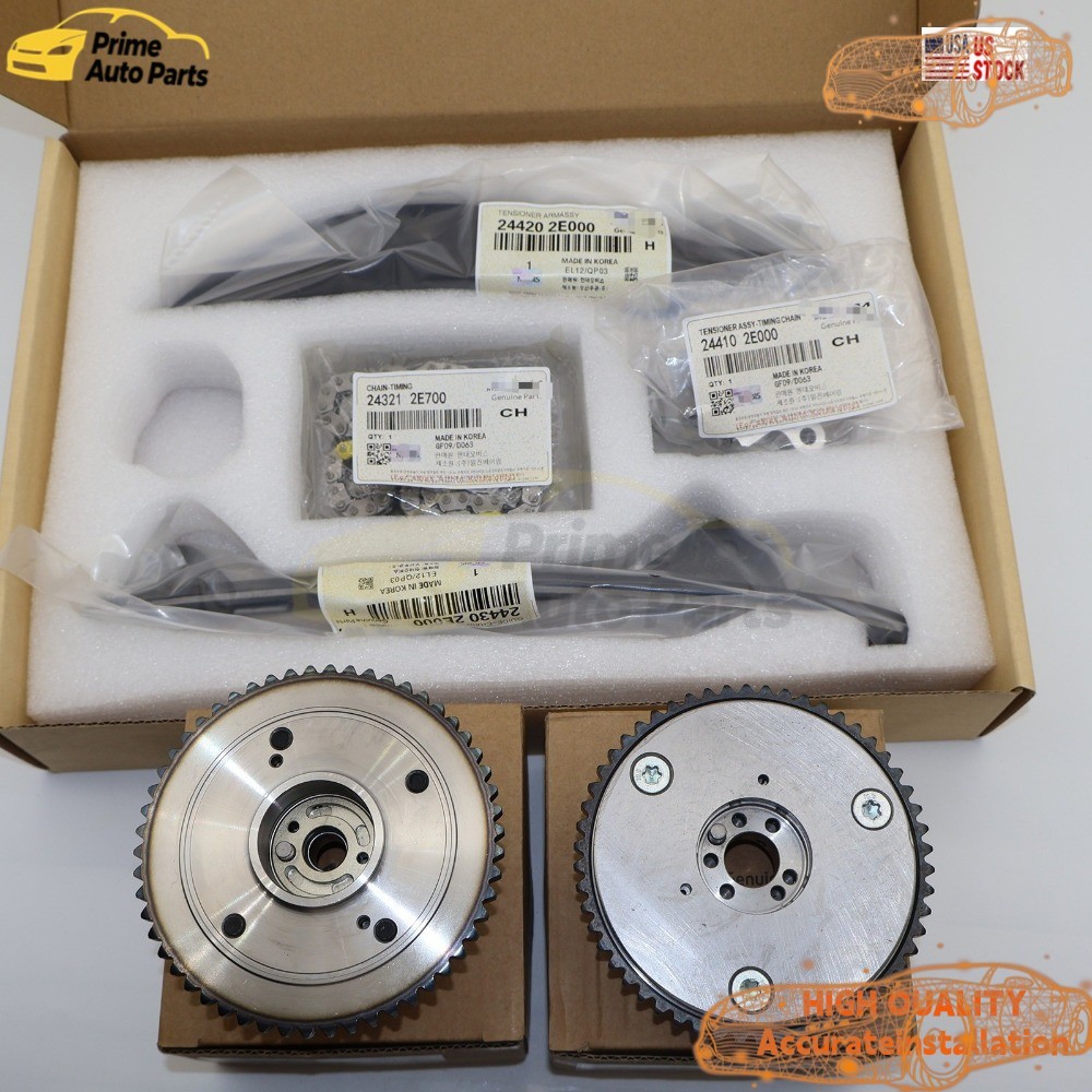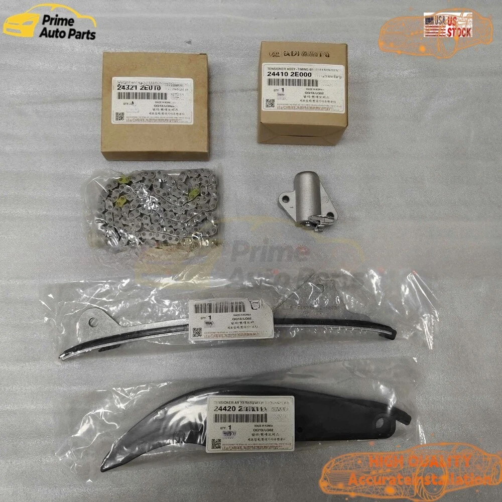 Store Categories Store Categories Ford Camera Timing chain Ignition coil Clock spring Jeep Honda Toyota Chevrolet Other OEM Hyundai Elantra Kona 2.0L 2017-2020 Timing Chain Kit w/ VVT Camshaft Gear US Product Description PRODUCT PARAMETERS Condition: 100% New Color: As Picture Type: Timing Kit OEM Part Numbers: 24300-2E706, 24321-2E700, 24350-2E700, 24370-2E020, 24410-2E000, 24420-2E000, 24430-2E000 PACKGE: 1x CVVT Intake Camshaft Gear Sprocket 24350-2E700 1x CVVT Exhaust Camshaft Gear Sprocket 24370-2E020 1x Primary Timing Chain - 5 PLATES VERSION 24321-2E010/24321-2E700 1x Timing Chain Guide Raild (Fixed) 24430-2J000,24430-2E000 1x Tensioner Arm 24420-2J000,24420-2E000 1x Timing Chain Tensioner 24410-2E000 FEATURES & BENEFITS 1.Our Product with reasonable price which saves up to 50% of your cost. 2.Brand-New 100% test, Professional MFG, High Quality Material, Easy Installation, OEM Standard. 3.Made of high-quality material, lightweight and long time to use. 4.Professional manufacturing, high sensitivity, high reliability. 5.Our items working more stable when you driving. 6.Good Choice for Avoiding Error Code Problem. COMPATIBLE WITH FOLLOWING MODELS: For 2017-2020 Hyundai Elantra Sedan 2.0L WITHOUT Turbocharged For 2018-2021 Hyundai Kona 2.0L WITHOUT Turbocharged For 2019-2021 Hyundai Veloster 2.0L WITHOUT Turbocharged For 2017-2022 Kia Forte Sedan 2.0L For 2017-2018 Kia Forte 5 Hatchback 2.0L WITHOUT Turbocharged For 2020-2022 Kia Soul 2.0L For 2021-2022 Kia Seltos 2.0L Payment Policy Shipping Policy Return Policy About Us Payment Policy Immediate payment is required upon selecting "Buy It Now" or upon checking out through the cart. Shipping Policy Items shipped from the United States are automatically shipped by eaby and are usually shipped within 1 business day. Items shipped from China are usually shipped within 2 business days, and no longer than 5 business days. Standard shipping for items shipped to the United States is free. Return Policy Please do not leave negative feedback or request a return before sending us a message, we will make sure you are satisfied. Send an email describing your problem and we will contact you within 12 hours to resolve the issue. About Us Welcome to our auto parts store! We attach great importance to the quality of each product and are committed to providing every customer with excellent pre-sales and after-sales services. Whether you are a retail customer or a bulk buyer, we will serve you wholeheartedly. You can always follow our store or contact us by email to enjoy more promotions and special discounts. Thank you for your support and trust, and look forward to providing you with the best products and services. Copyright © 2023 Dianxiaomi