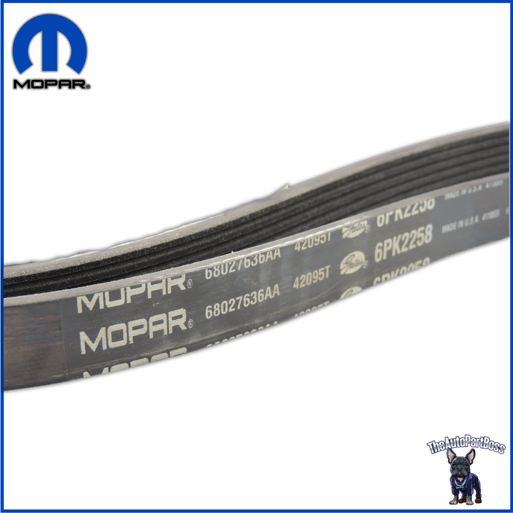 Country/Region of Manufacture: United States Type: Serpentine Belt gtin13: Does Not Apply Brand: Mopar Superseded Part Number: 68027636AA Manufacturer Part Number: 68027636AB OE/OEM Part Number: 68027636AB UPC: Does Not Apply