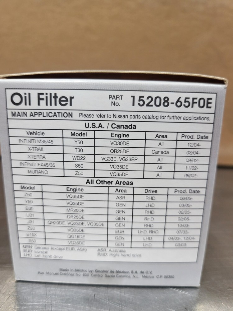 This oil filter fits perfectly and works like a charm! Super easy to install, and the quality is top-notch since it's genuine Nissan. Keeps my engine clean and running smooth—no leaks or issues. Definitely worth it for peace of mind and long-lasting performance. Highly recommend sticking with OEM for the best results!