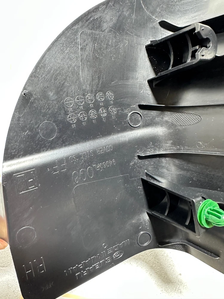 Manufacturer Part Number: 94060FL000, 94060-FL000, 94060 FL000 Vintage Part: No Color: Black Universal Fitment: Yes Type: Cowl Trim Items Included: See photo Material: Plastic Performance Part: No Features: Durable, Easy Clean, Easy Installation Number in Pack: 1 Brand: Subaru OE/OEM Part Number: 94060FL000VH, 94060-FL000-VH, 94060 FL000 VH Placement on Vehicle: Front, Right Country/Region of Manufacture: Japan Manufacturer Warranty: 1 Month Finish: Matte