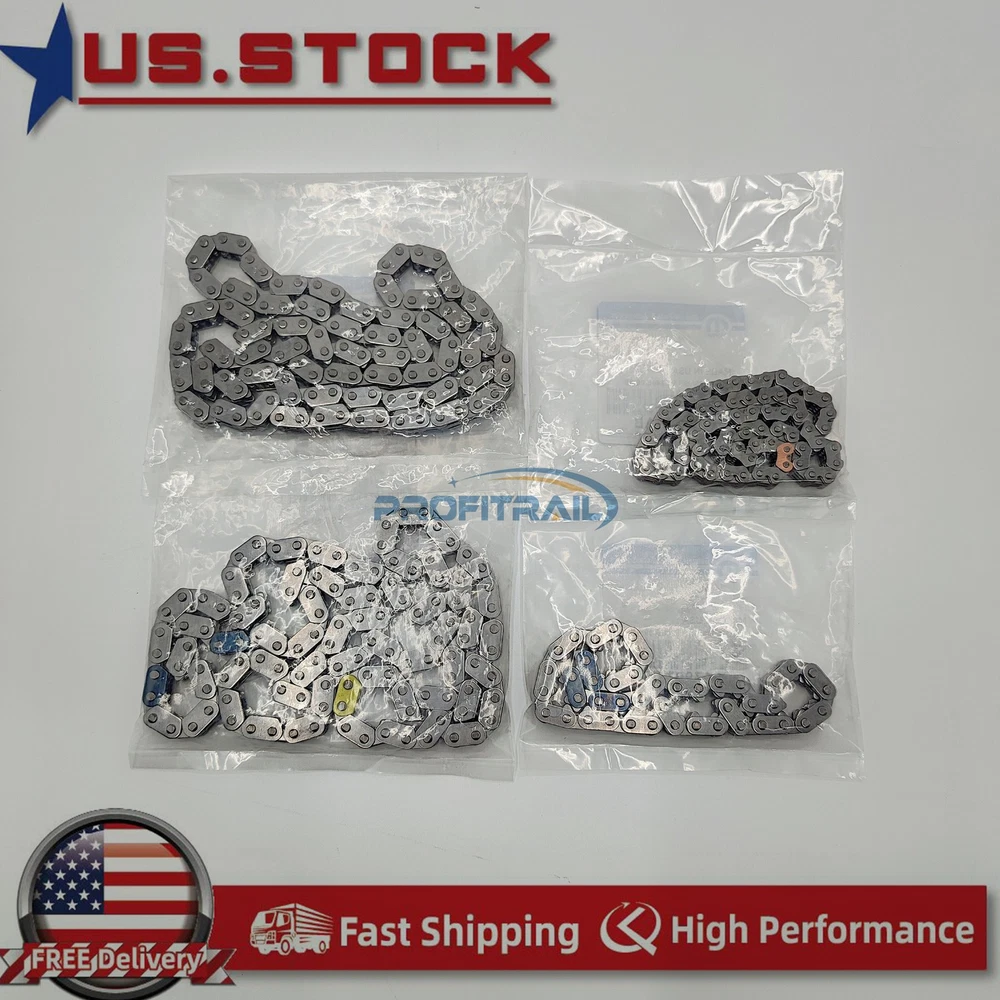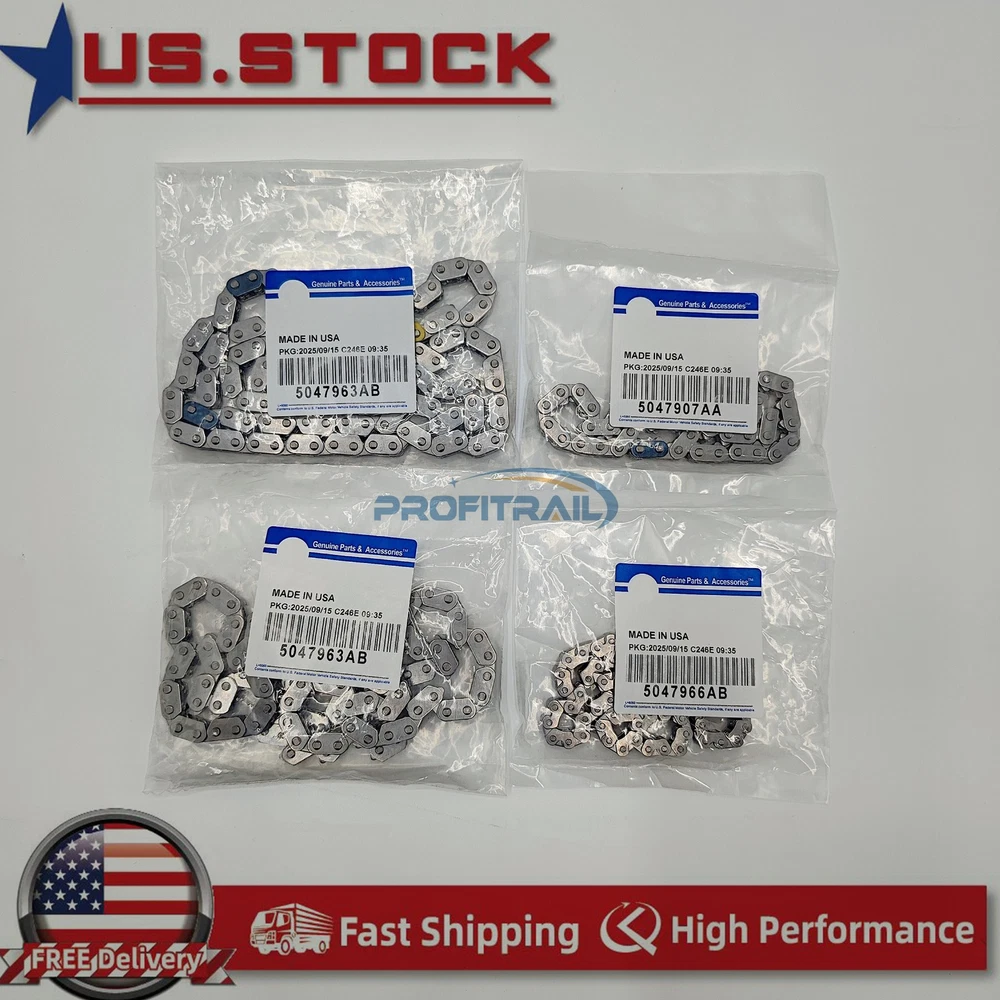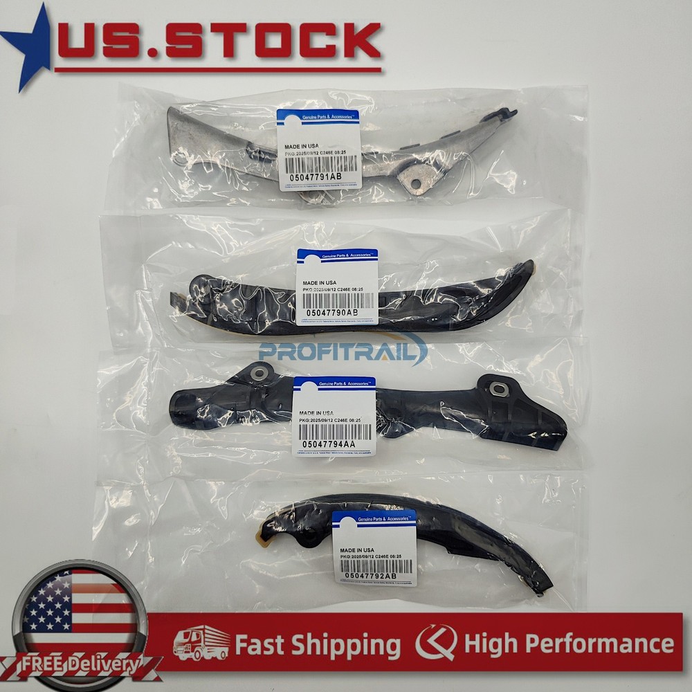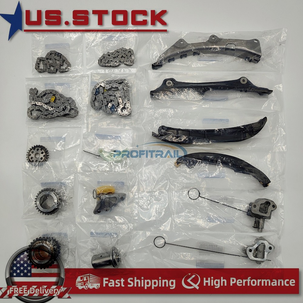 Product Description Condition: New Manufacturer Part Number: 05047794AA,05047791AB,05047790AB,05047792AB,05047886AB,05047886AB,68585405AA,5047965AB,5048090AA,5047966AB,5047907AA,5047963AB,5047963AB,5047907AA,5047963AB Fitment: 17 - 24 CHRYSLER PACIFICA 3.6L 3604CC 220CU. IN. V6 DOHC 17 - 24 CHRYSLER PACIFICA 3.6L 3604CC 220CU. IN. V6 PLUG-IN HYBRID EV- (PHEV) DOHC 20 - 24 CHRYSLER VOYAGER 3.6L 3604CC 220CU. IN. V6 DOHC 16 - 24 DODGE DURANGO 3.6L 3604CC 220CU. IN. V6 DOHC 20 - 23 JEEP GLADIATOR 3.6L 3604CC 220CU. IN. V6 DOHC 16 - 23 JEEP GRAND CHEROKEE 3.6L 3604CC 220CU. IN. V6 DOHC 21 - 23 JEEP GRAND CHEROKEE L 3.6L 3604CC 220CU. IN. V6 DOHC 22 - 22 JEEP GRAND CHEROKEE WK 3.6L 3604CC 220CU. IN. V6 DOHC 18 - 24 JEEP WRANGLER 3.6L 3604CC 220CU. IN. V6 DOHC 21 - 23 JEEP WRANGLER 3.6L 3604CC 220CU. IN. V6 MILD HYBRID EV- (MHEV) DOHC 19 - 22 RAM 1500 3.6L 3604CC 220CU. IN. V6 DOHC 19 - 24 RAM 1500 3.6L 3604CC 220CU. IN. V6 MILD HYBRID EV- (MHEV) DOHC 22 - 24 RAM PROMASTER 1500 3.6L 3604CC 220CU. IN. V6 DOHC 22 - 24 RAM PROMASTER 2500 3.6L 3604CC 220CU. IN. V6 DOHC 22 - 24 RAM PROMASTER 3500 3.6L 3604CC 220CU. IN. V6 DOHC Package included: 2 Timing Chains (Primary) – 120 links 1 Timing Chain (Secondary) - 44 links 1 Timing Chain Tensioner (Primary) 1 Timing Chain Tensioner (Secondary Left) 1 Timing Chain Tensioner (Secondary Right) 1 Timing Chain Tensioner Arm (Left) 1 Timing Chain Tensioner Arm (Right) 1 Timing Chain Guide (Secondary Left) 1 Timing Chain Guide (Secondary Right) 1 Timing Chain Guide (Primary) 1 Timing Chain Intermediate Gear 1 Idler Gear Shaft 1 Crankshaft Gear 1 Oil Pump Chain – 66 links 1 Oil Pump Gear 1 Oil Pump Chain Tensioner Notice? 1.If you are not completely satisfied with your purchase, you may return it for a refund or exchange it for a replacement. We only require that you contact us within 14 days of receiving your item and return it in the same condition it was received. 2.Please check the model before your purchase and compare the position of the screw hole In case of wrong purchase. 3.If you have any questions, please contact us by email and we will solve them for you.